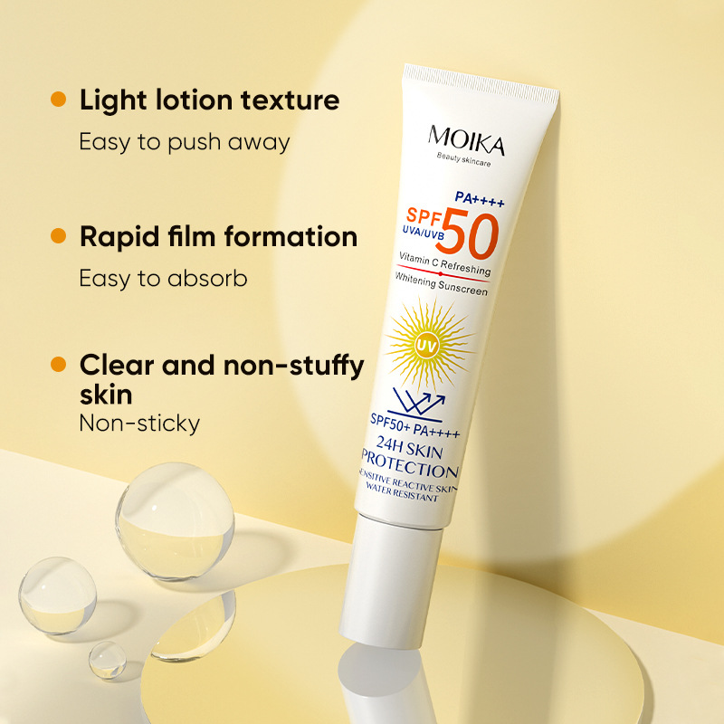 加工定制外贸防晒霜 spf50英文防晒霜美白防晒隔离三合一防晒乳 English | 投诉