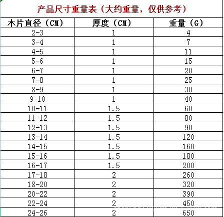 2.由于木片都是整颗原木切割而成,形状没有正圆,各种圆和椭圆,有树结巴,裂痕和其他黑蓝印记及掉皮屑等都属正常现象,因为切割和打磨流程,厚度都有一定的偏差,还有天然原木存在开裂概率,请悉知。