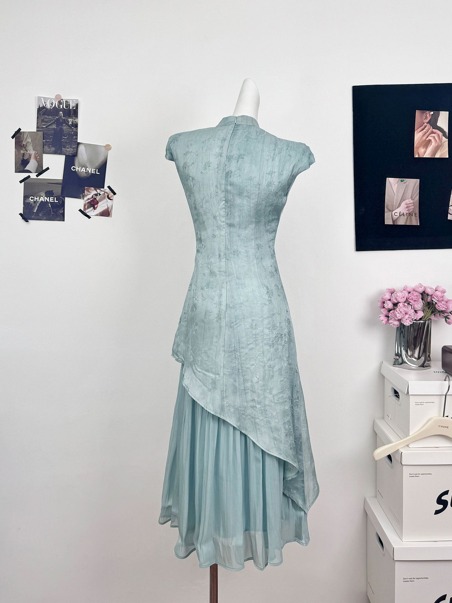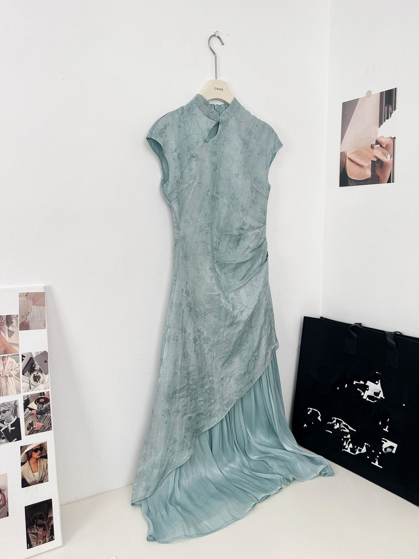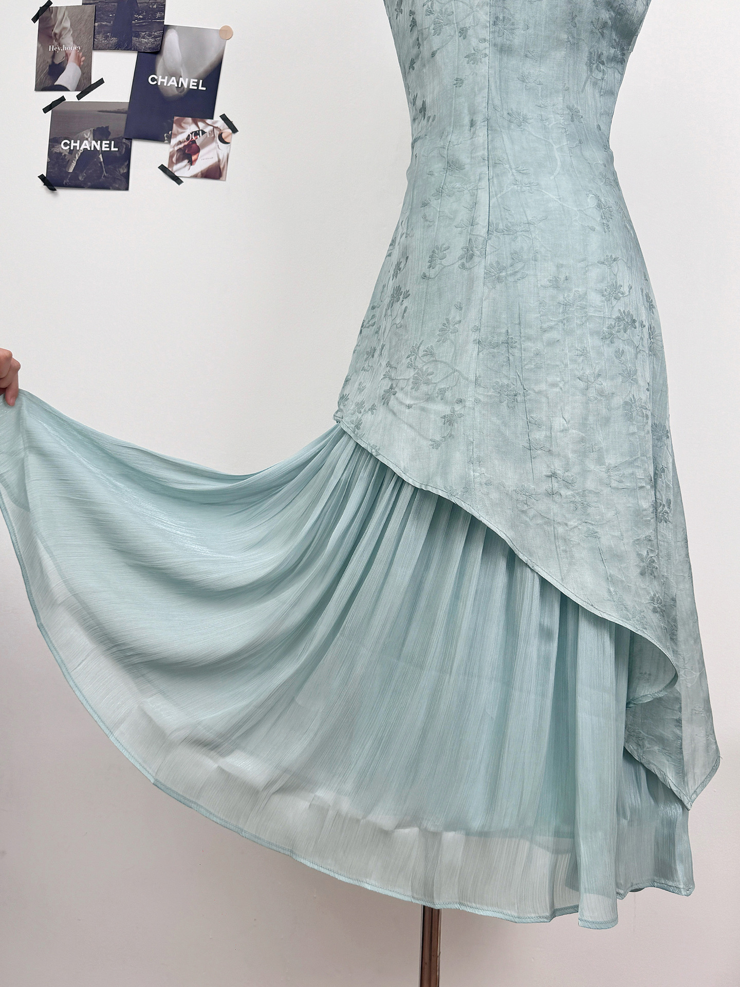 新中式轻国风改良蓝色连衣裙女2024夏新款气质修身包臀温柔风长裙 投诉