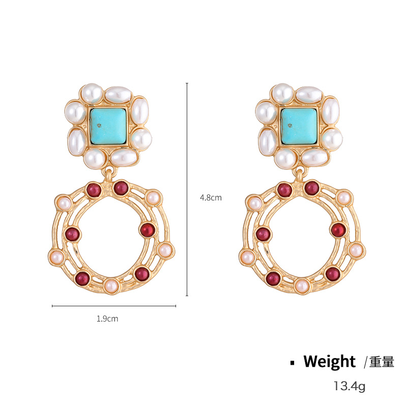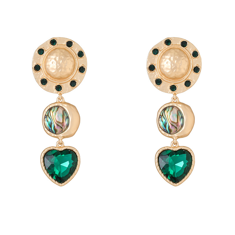 肯杰欧美时尚中古风耳环跨境时尚设计流行绿松石哑金爱心彩贝耳饰 投诉
