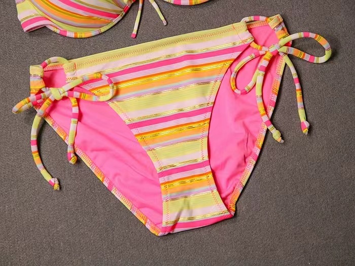 2024新款彩色条纹系带沙滩比基尼泳装分体时尚三角泳衣女式