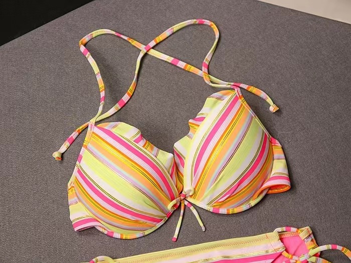 2024新款彩色条纹系带沙滩比基尼泳装分体时尚三角泳衣女式 English | 投诉