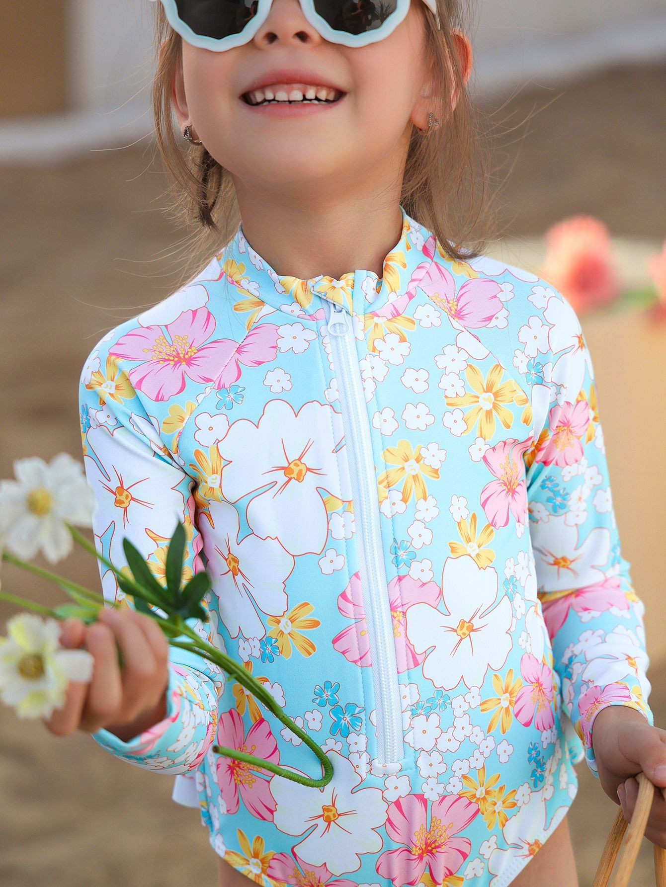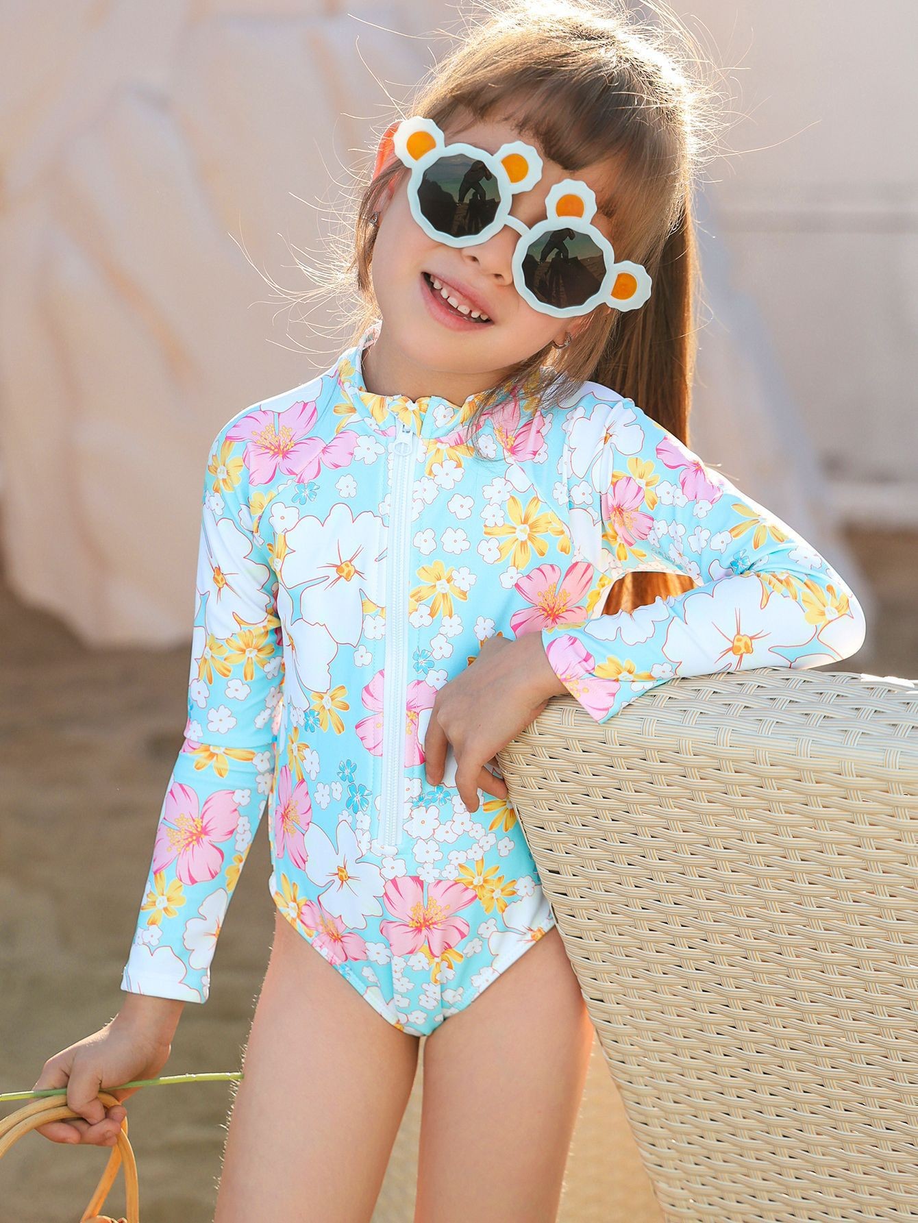 24年新款儿童泳衣 女童夏季儿童透气连体长袖印花可爱泳衣