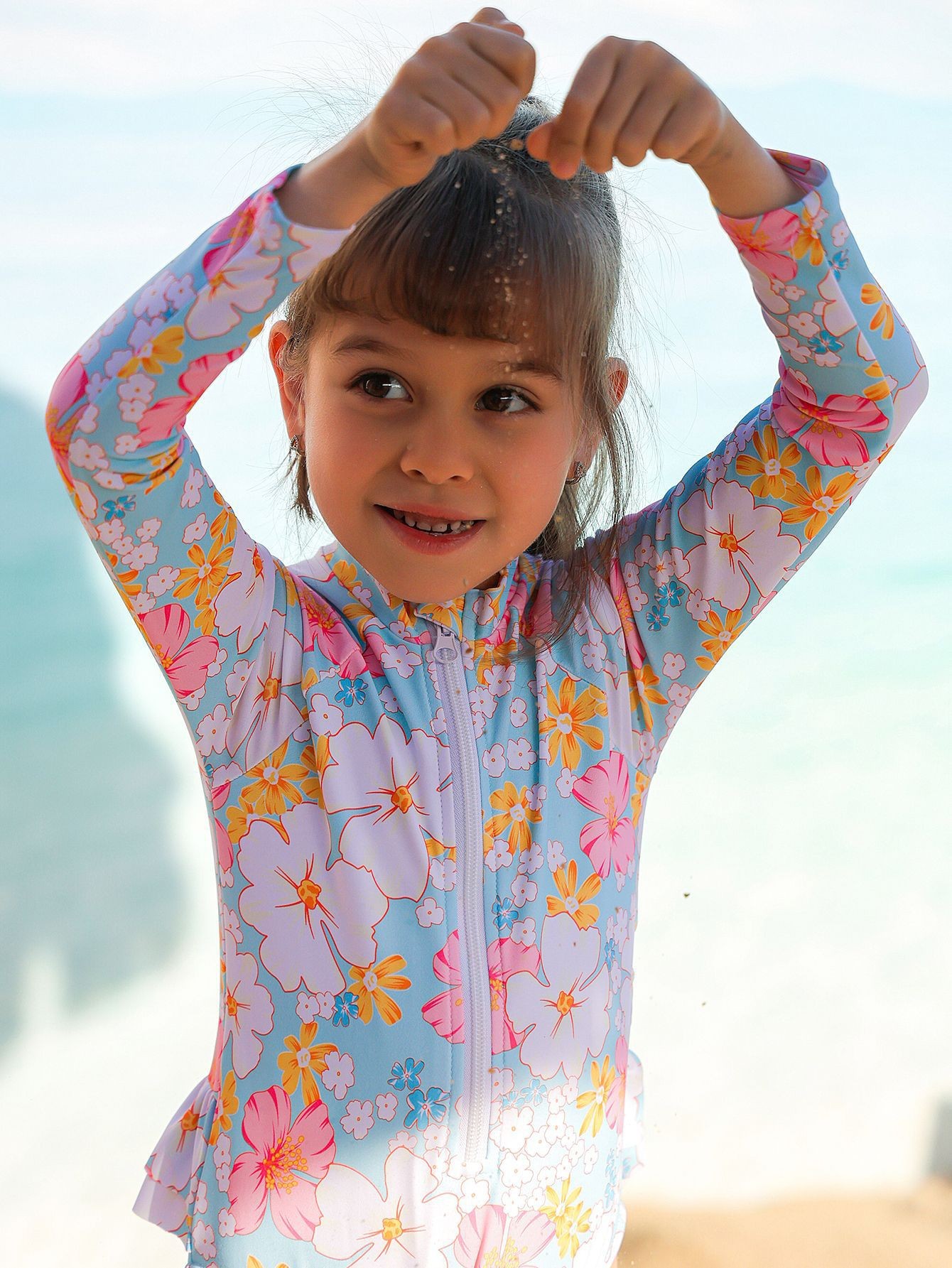 24年新款儿童泳衣 女童夏季儿童透气连体长袖印花可爱泳衣 English | 投诉