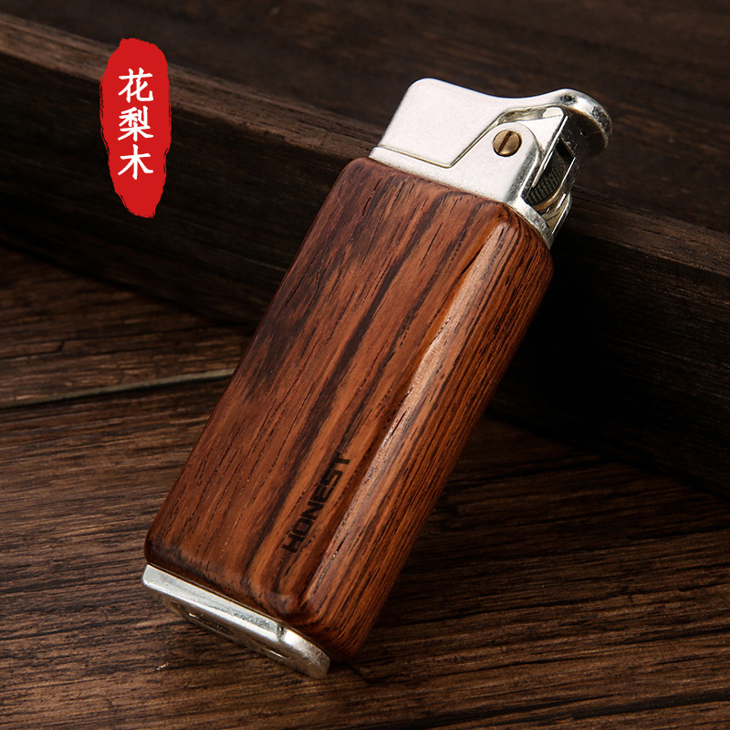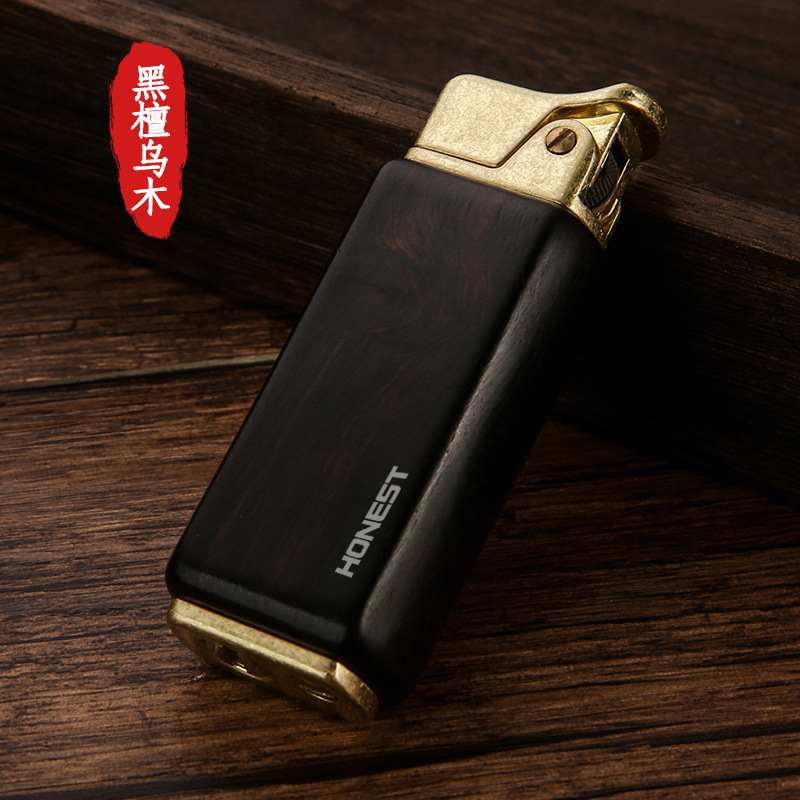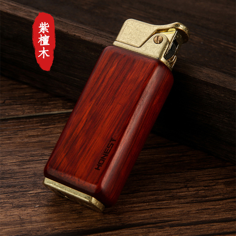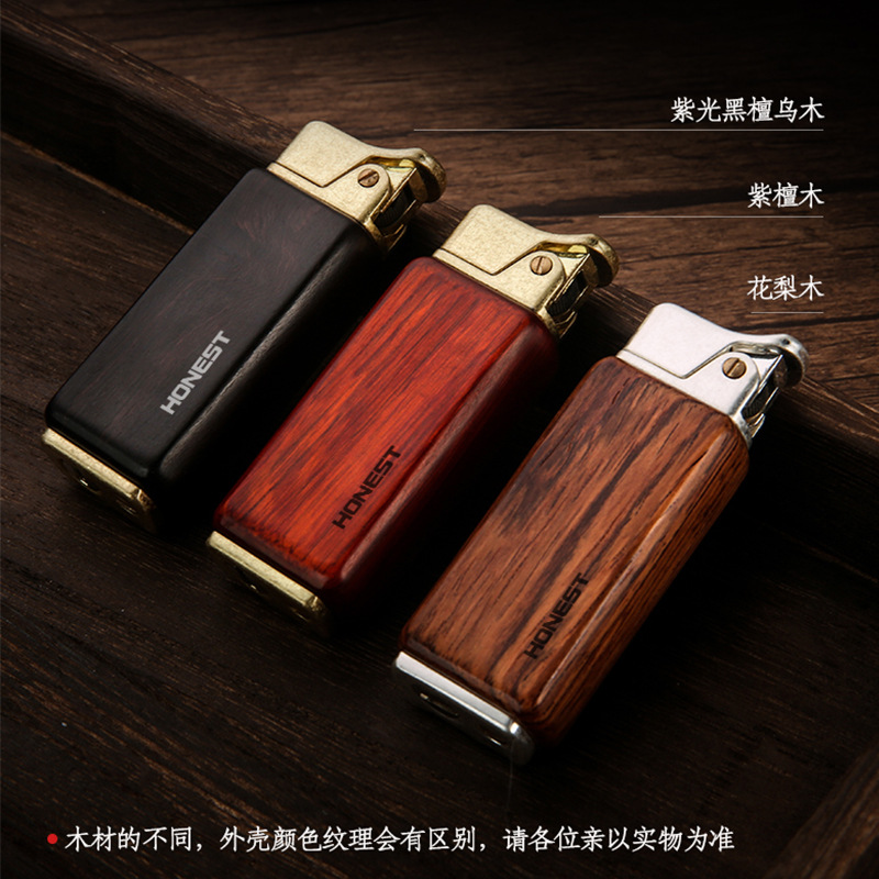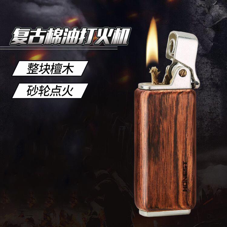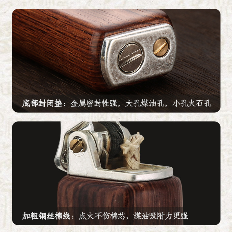 百诚新款檀木煤油复古打火机怀旧老式个性按压点火男士木头打火机
