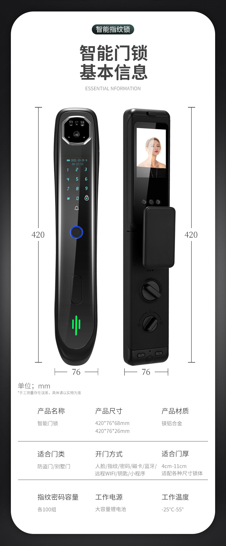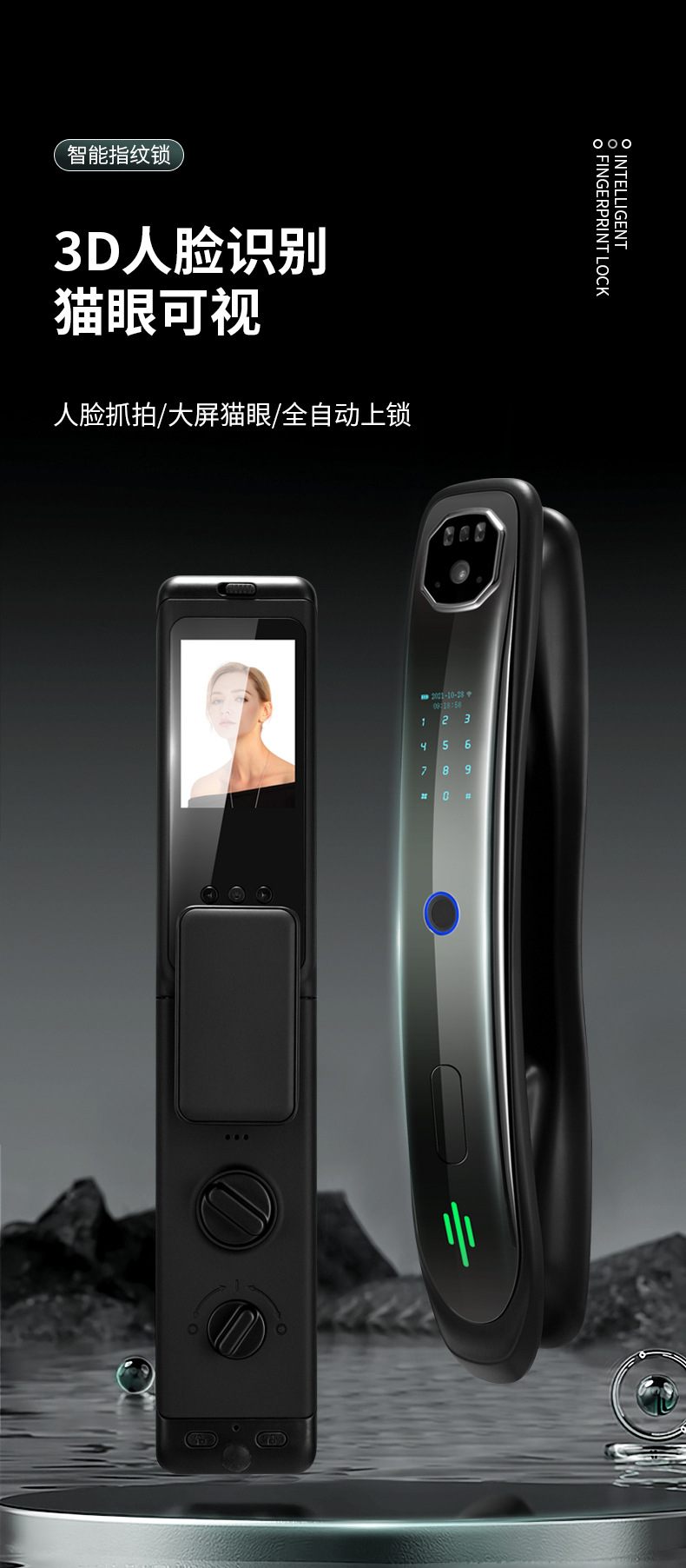 艾西蒂全自动优智云家3D人脸识别指纹锁猫眼可视对讲智能锁V6系列 English | 投诉