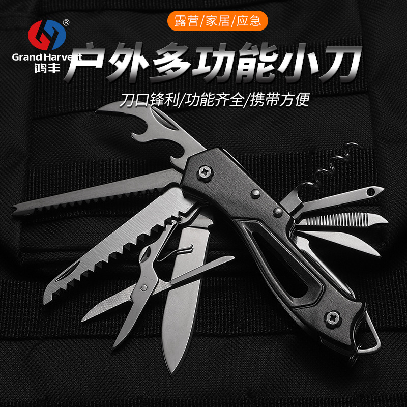 鸿丰11开小刀多功能刀户外多用刀折叠刀剪瑞士军刀组合工具