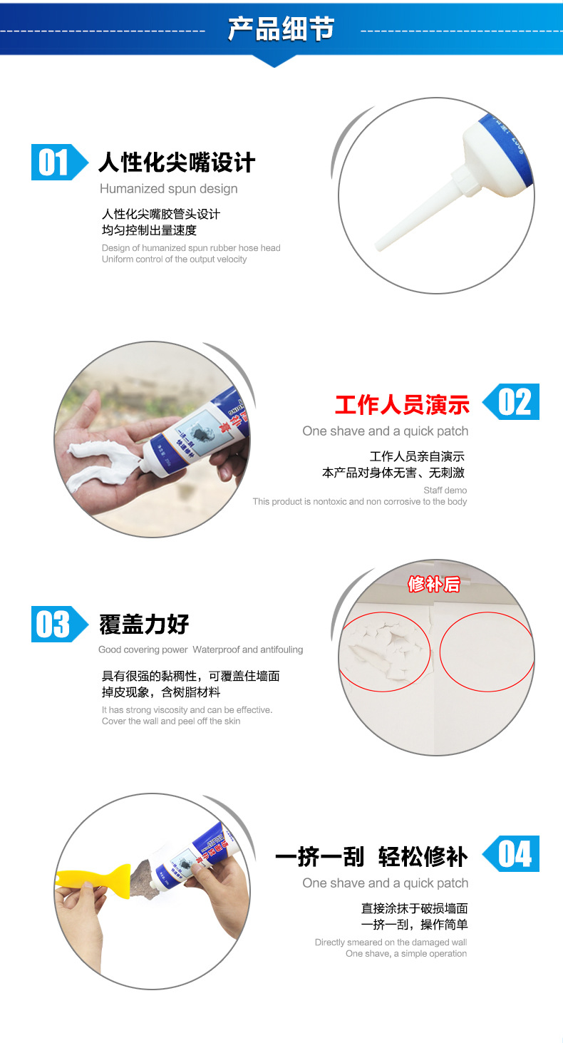 墙面修补膏补墙膏洞墙体开裂钉眼修补墙漆白色家用腻子粉刷