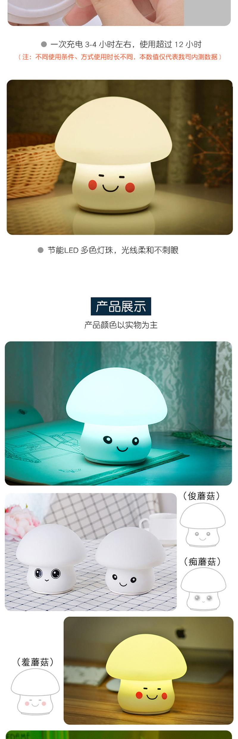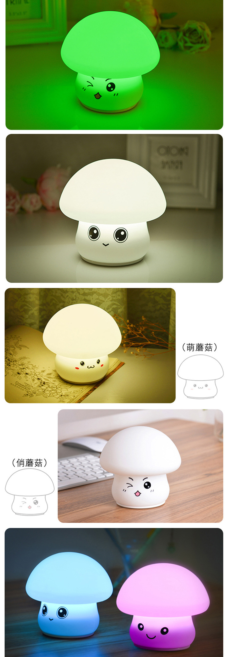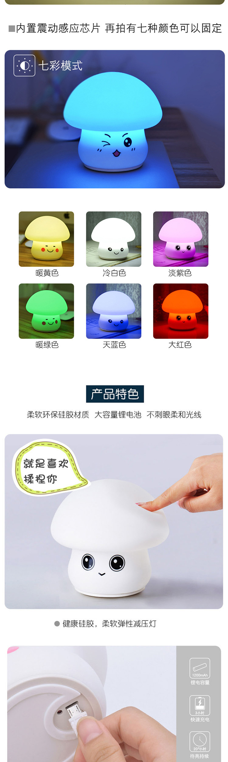 现货蘑菇小夜灯氛围灯USB充电硅胶灯定制拍拍灯儿童礼物夜灯跨境 投诉
