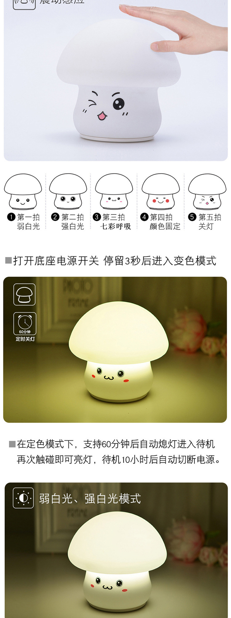 现货蘑菇小夜灯氛围灯USB充电硅胶灯定制拍拍灯儿童礼物夜灯跨境