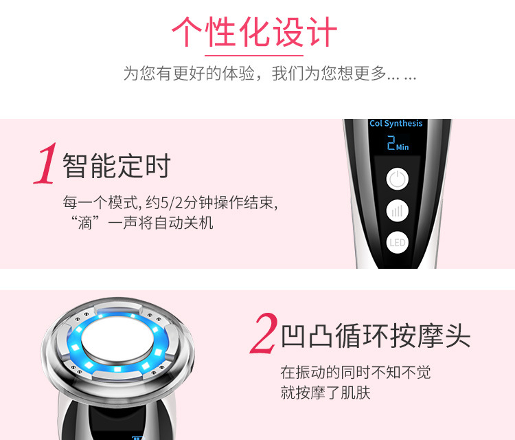 1、振动清洁按摩(彩光+振动+温度调节)5分钟