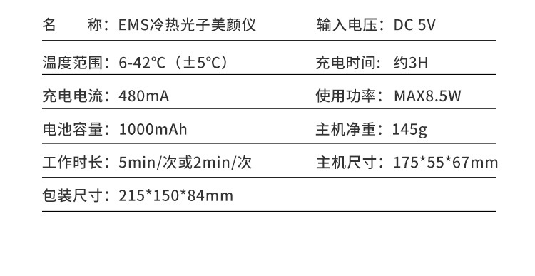 D022 ems冷热光子美容仪 模式功能时间