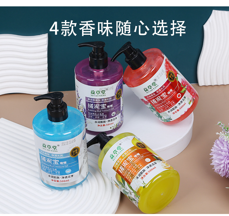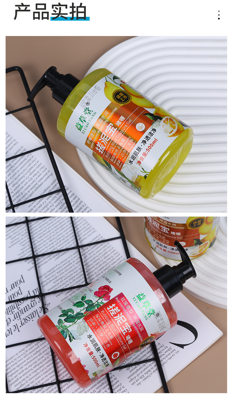 益草堂压泵搓泥宝4个香型玫瑰柠檬去角质去死皮沐浴露厂家批发 English | 投诉