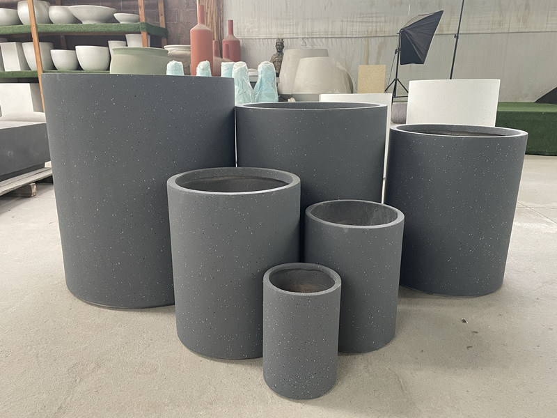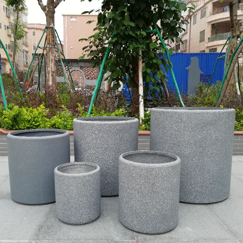 北欧酒店商场绿化工程水泥花盆麻石色圆形大口径种树大花器有库存