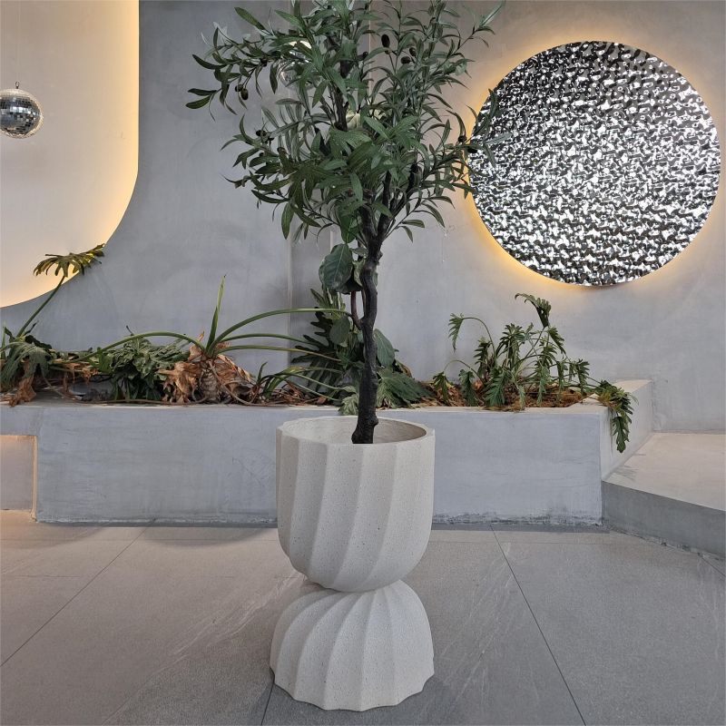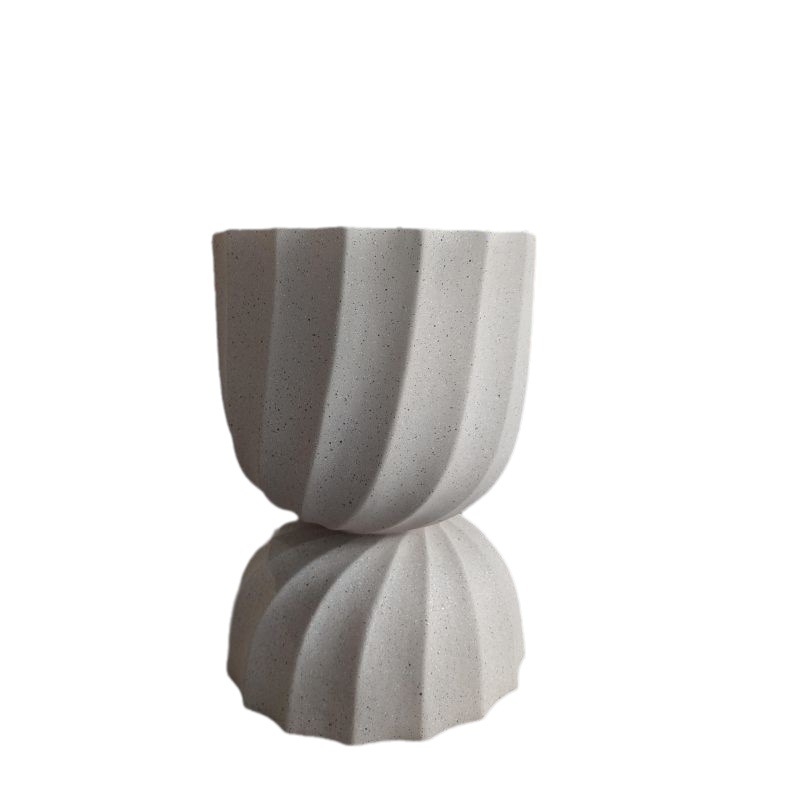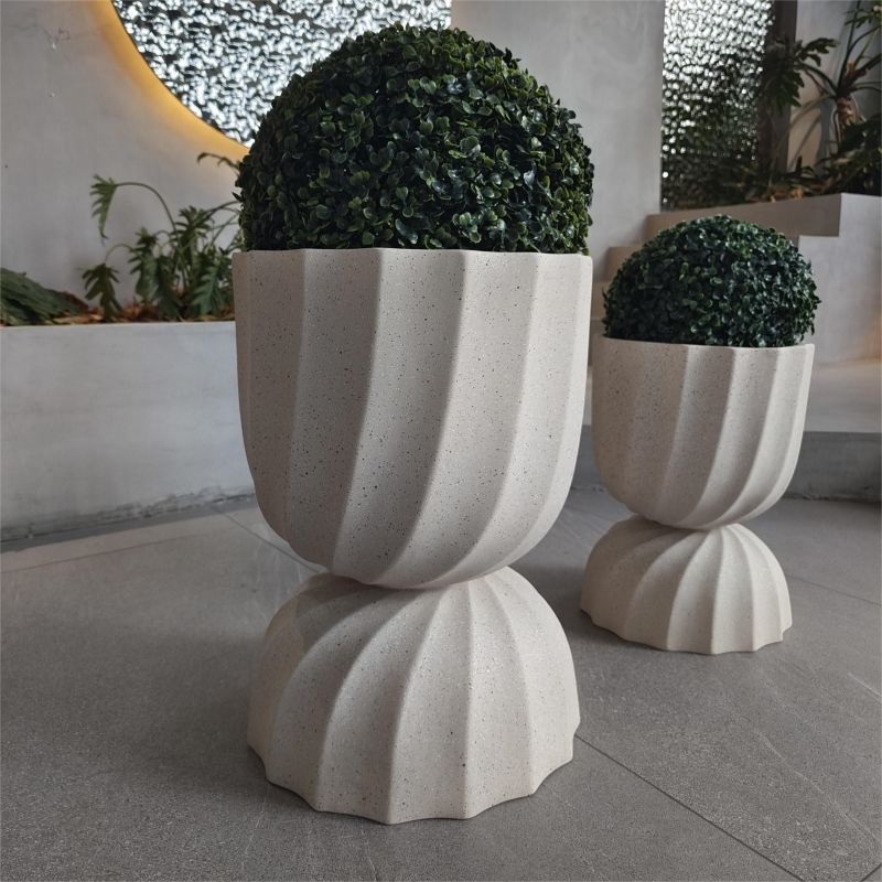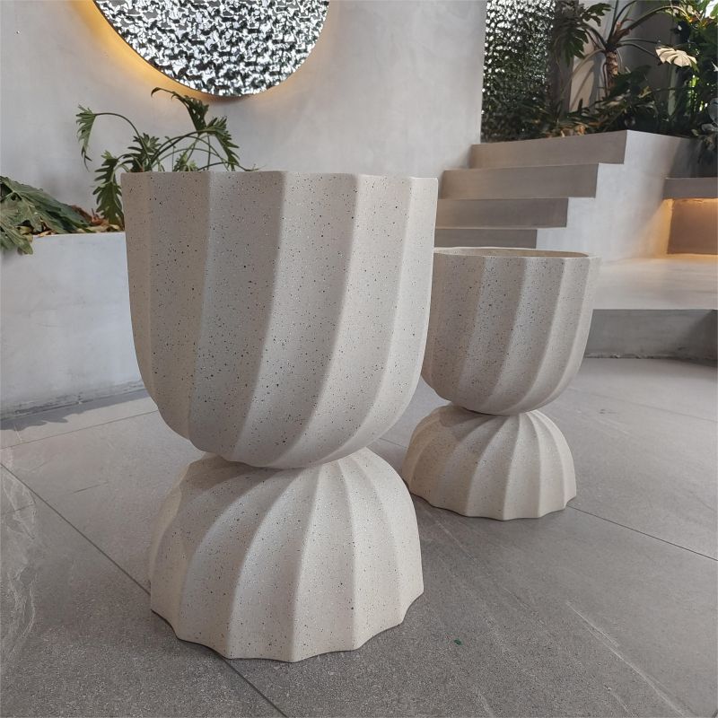欧美风坐地圆形杯型花器户外米黄色水泥种植花盆