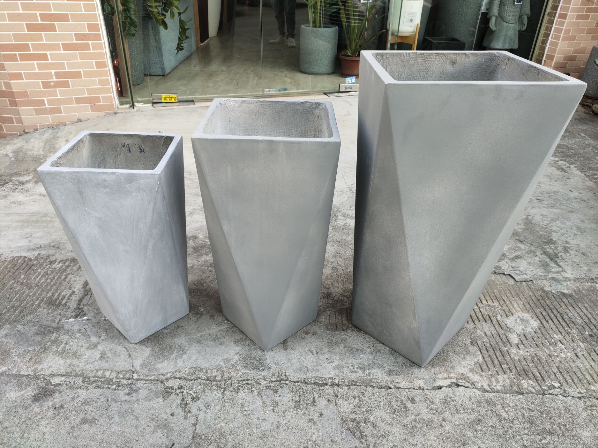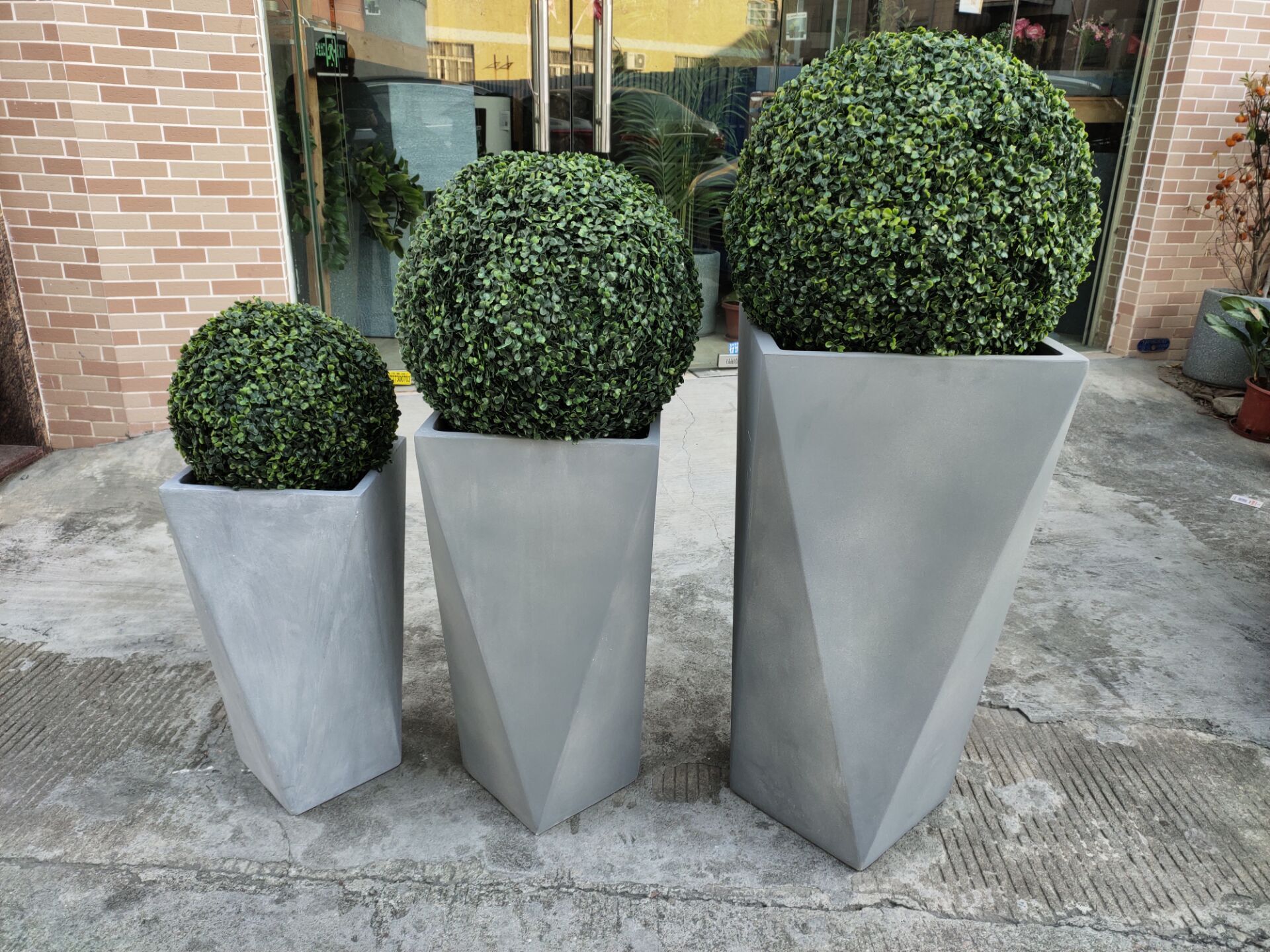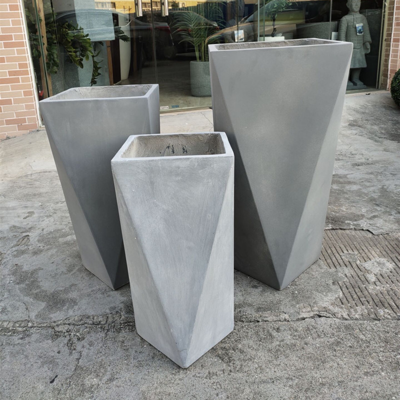 2023新款锥形灰色水泥花箱商场酒店咖啡厅美陈种植花盆