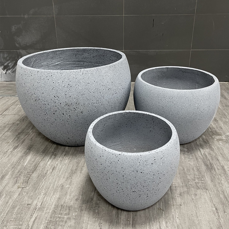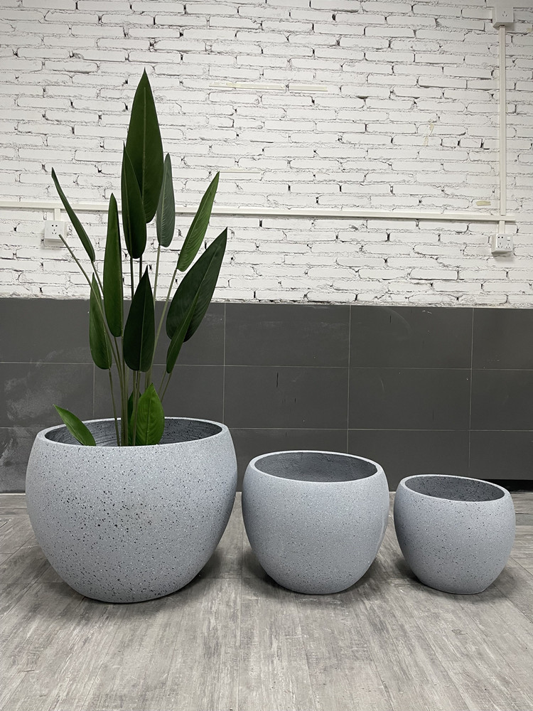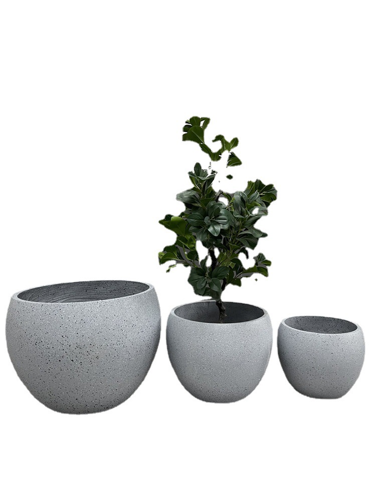 大号口径水泥花盆麻石色圆口花器北欧走廊客厅种植花盆外贸直供