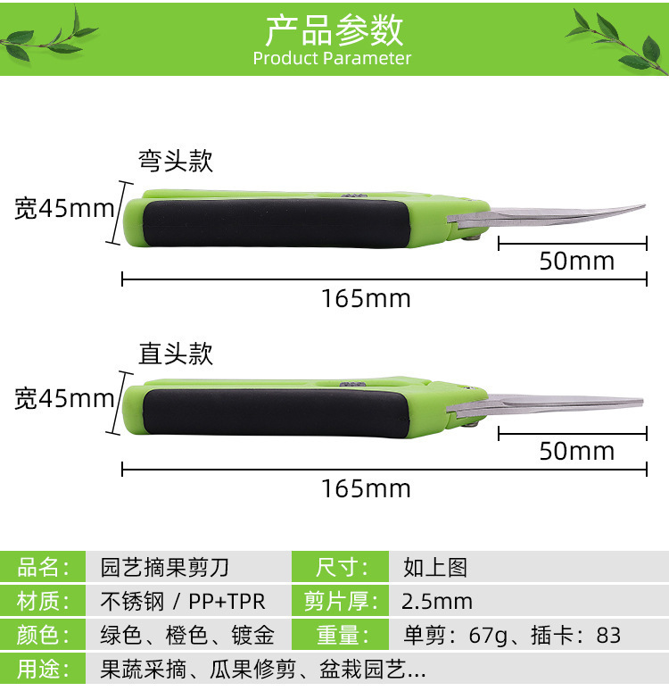 厂家直销不锈钢直头弯头花枝剪刀修枝剪 园艺剪刀果疏枝葡萄剪刀