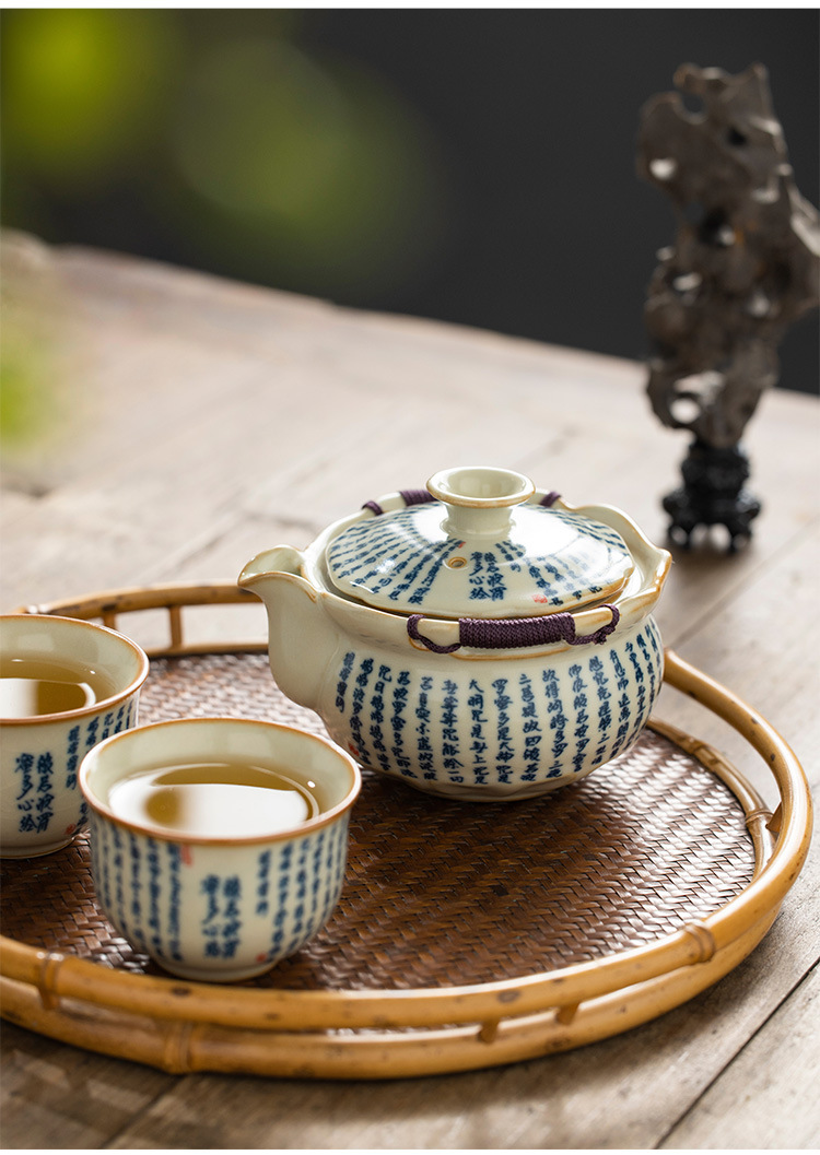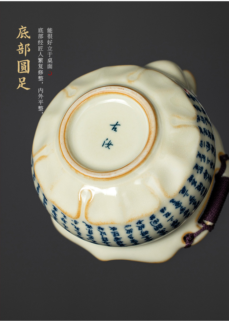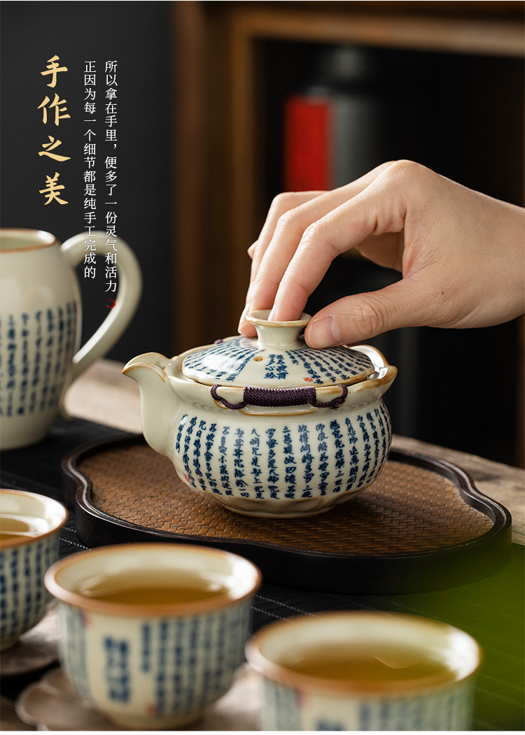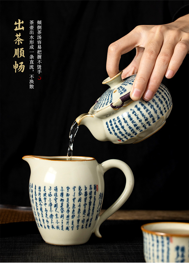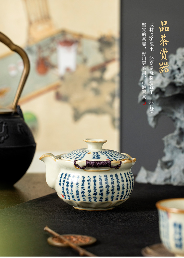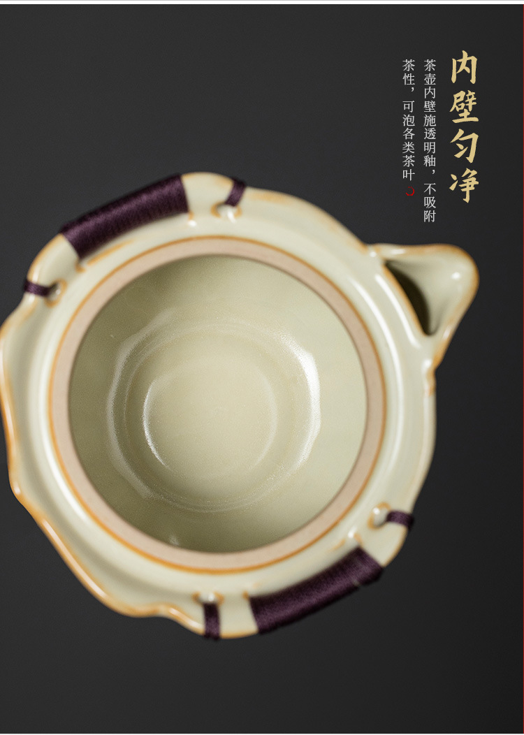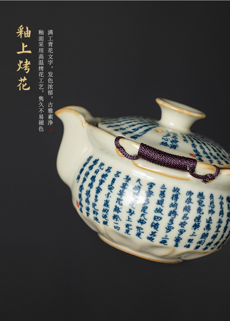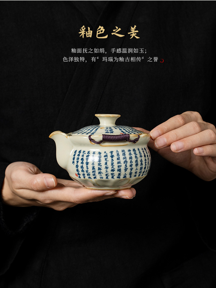 米黄汝窑般若心经盖碗陶瓷手抓壶大容量单个带盖家用防烫泡茶壶 English | 投诉
