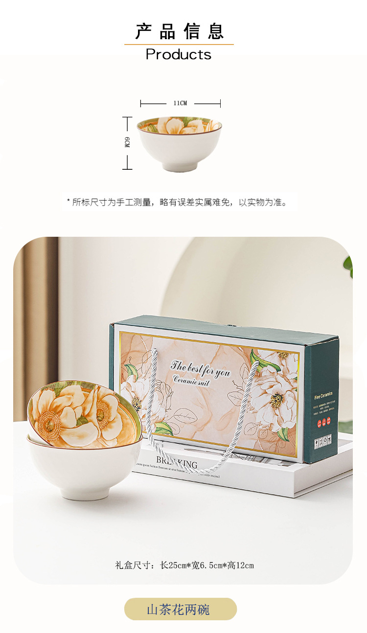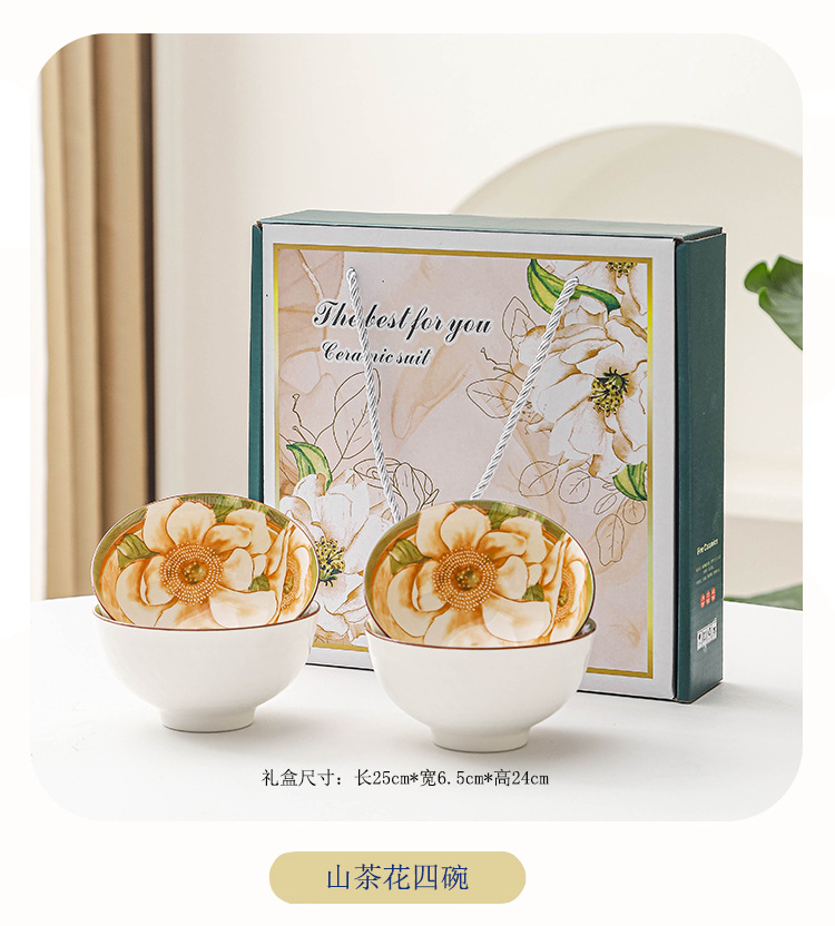 日式山茶花陶瓷碗餐具套装礼品釉下彩碗套装礼盒装碗筷套装伴手礼 English | 投诉