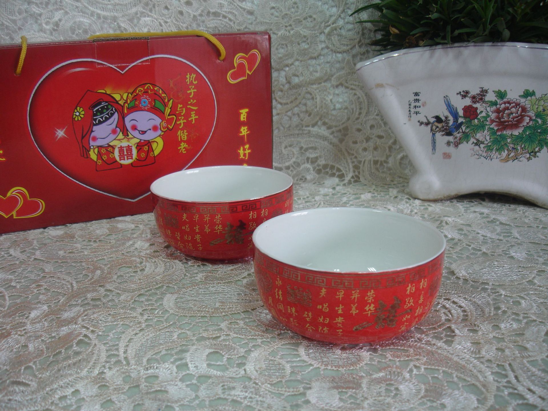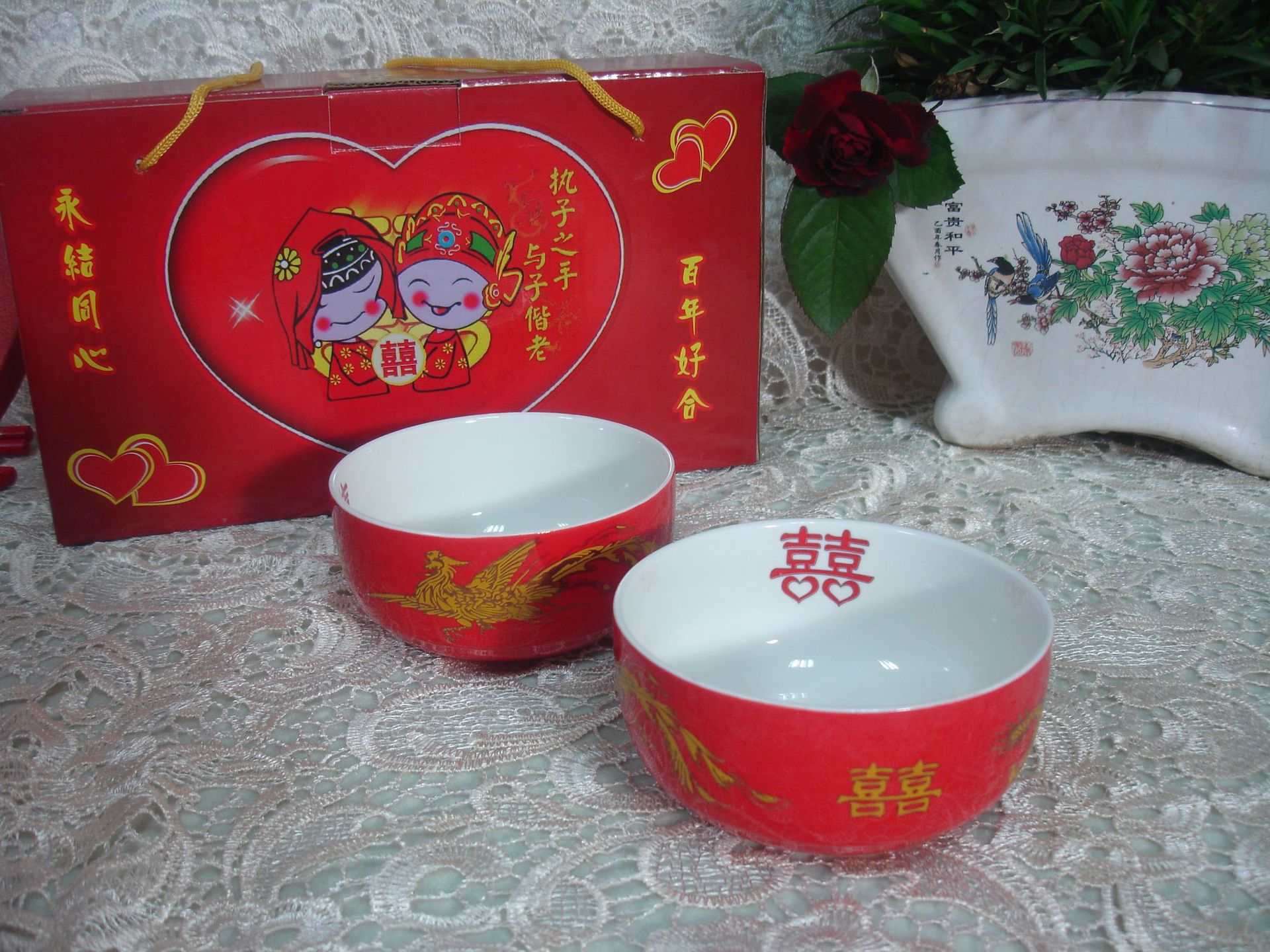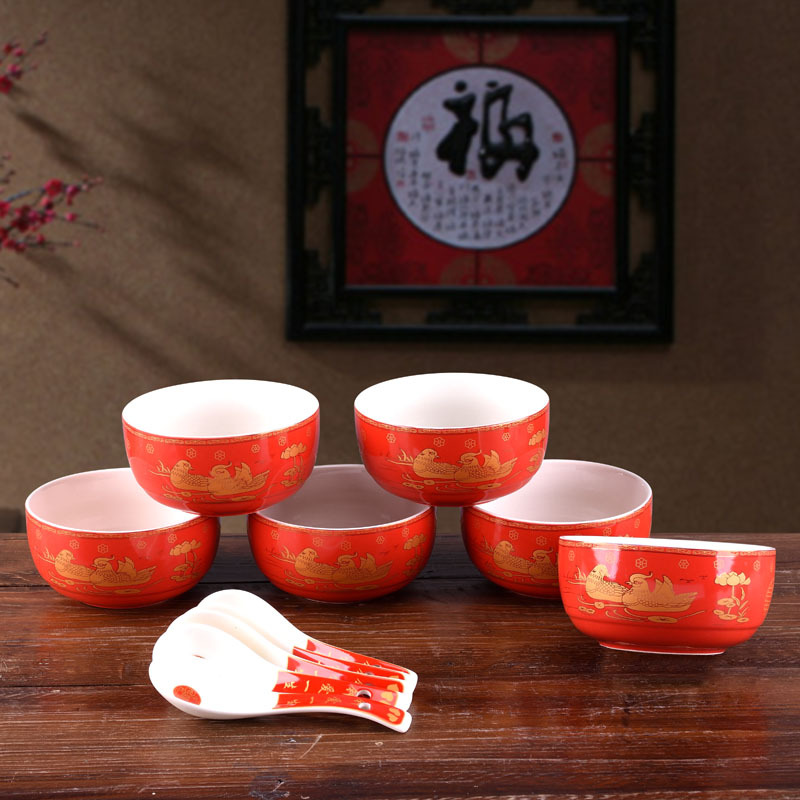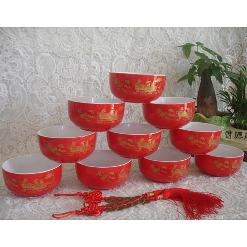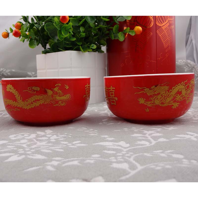 厂家供应结婚用喜庆红碗陶瓷龙凤双喜红碗中国红单碗喜碗婚庆用品 投诉