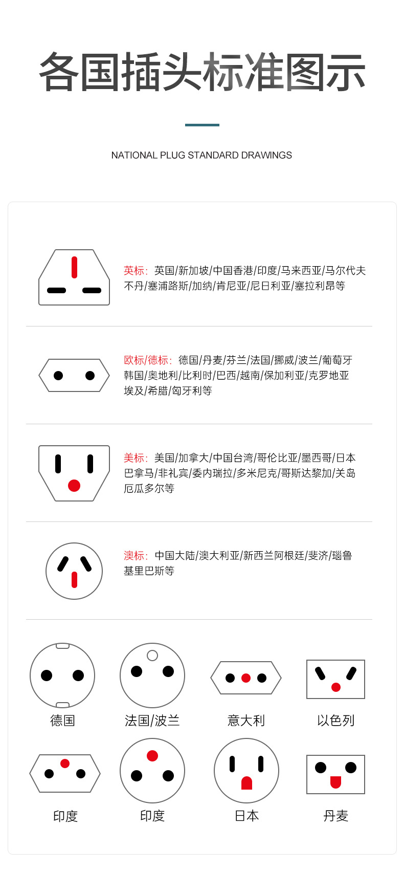 金宏达 国标美标转换插头多国通用插座转换器美规插脚扁插头9622