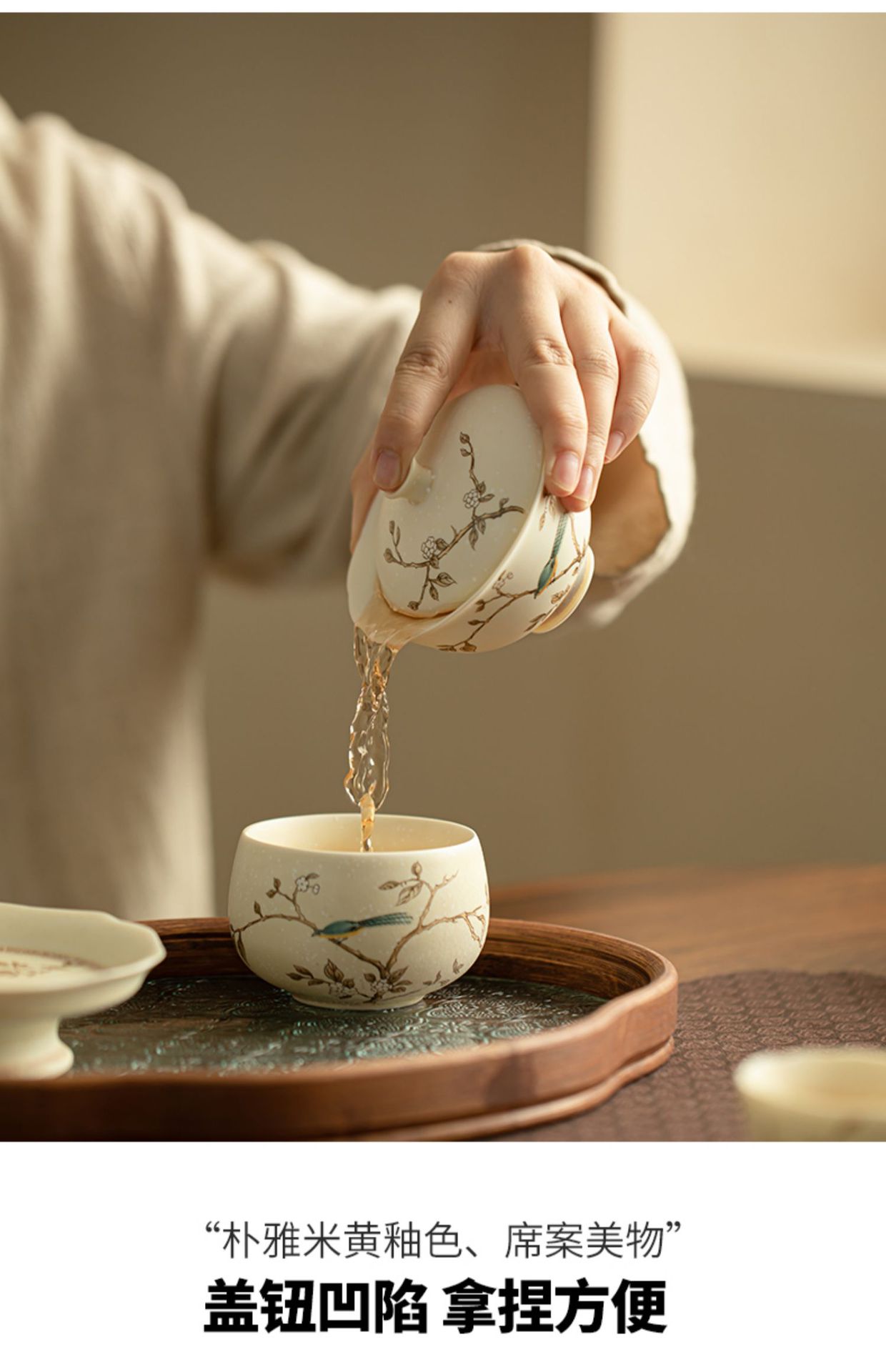 苏打烧萱草莺飞盖碗功夫茶具单个不烫手泡茶茶杯三才碗复古泡茶碗 English | 投诉