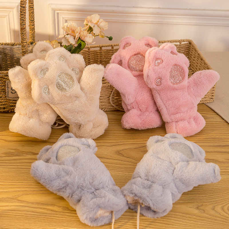 手套女冬季可爱韩版学生加绒加厚卡通骑车挂脖保暖全指手套女冬天 English | 投诉