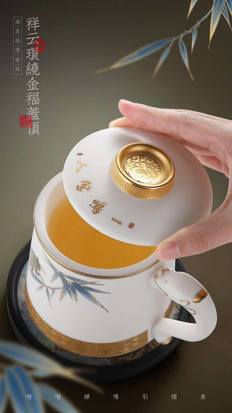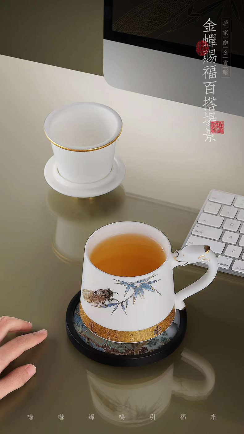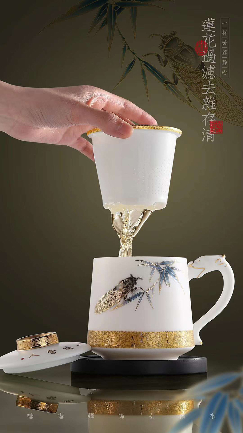 羊脂玉陶瓷带盖过滤茶水分离描金办公杯家用大容量马克杯茶杯水杯 English | 投诉