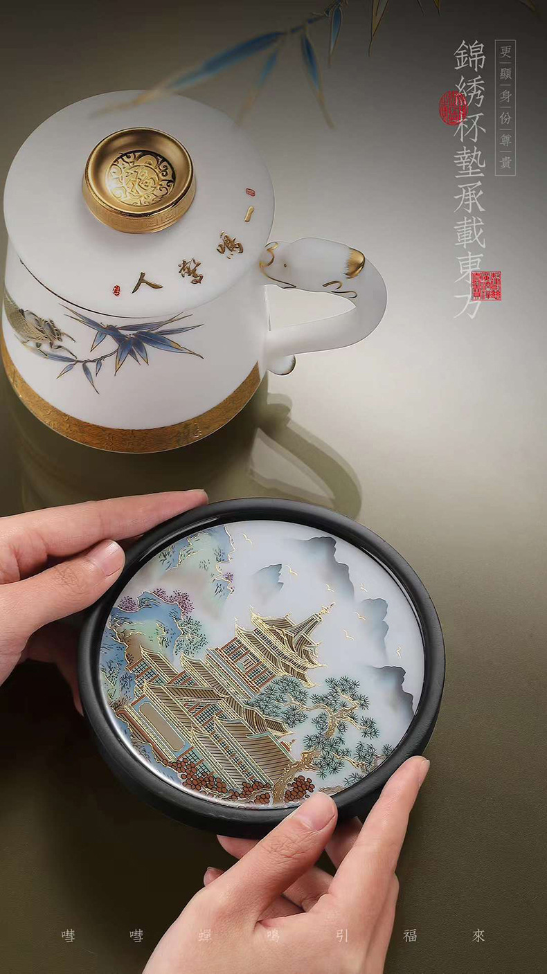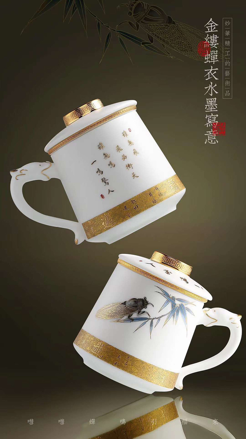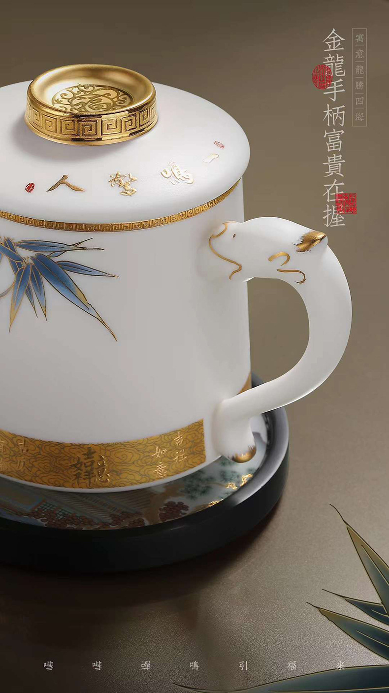 羊脂玉陶瓷带盖过滤茶水分离描金办公杯家用大容量马克杯茶杯水杯 English | 投诉