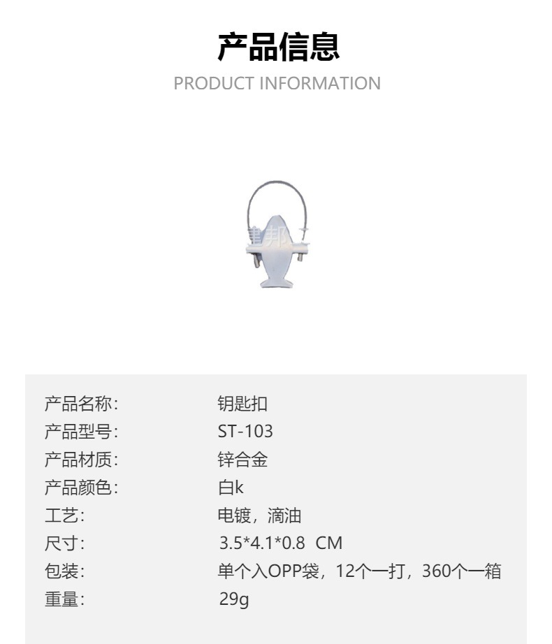 材质: 合金 货号: ST-103 是否进口: 否 合金种类: 锌合金 工艺: 电镀 加工定制: 是 品牌: 建邦 产品编号: ST-103 类别: 钥匙扣 摆挂形式: 挂饰 重量: 0.5 kg/个