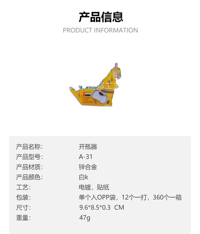 金属开瓶器旅游纪念品迪拜DUBAI哈利法塔贴纸冰箱贴锌合金开瓶器 投诉