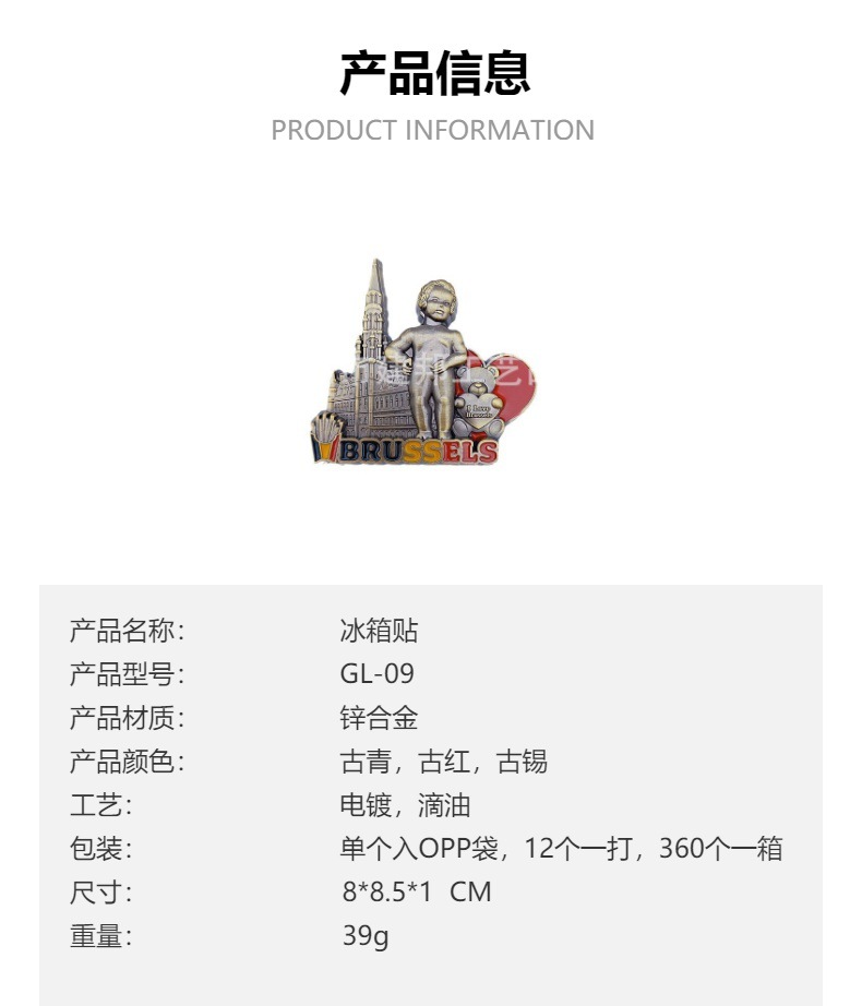 旅游纪念品比利时布鲁塞尔BRUSSELS萨布隆圣母教堂锌合金冰箱贴 投诉