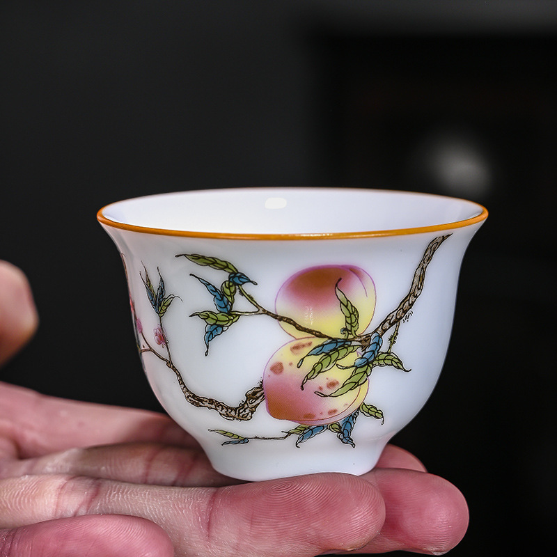 影青陶瓷茶杯珐琅彩功夫茶具品茗杯白瓷手绘个人杯家用主人杯茶盏