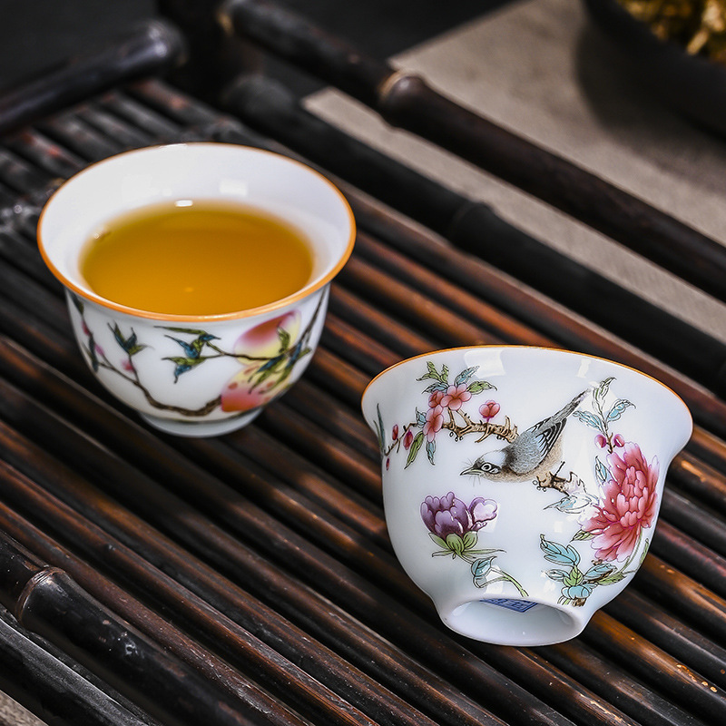 影青陶瓷茶杯珐琅彩功夫茶具品茗杯白瓷手绘个人杯家用主人杯茶盏 投诉