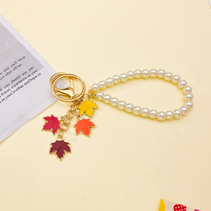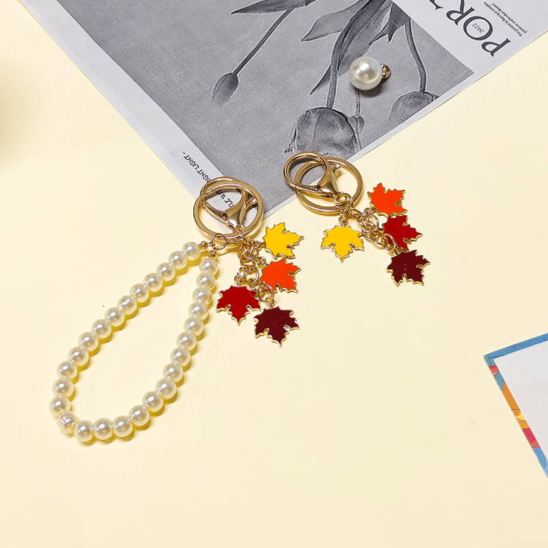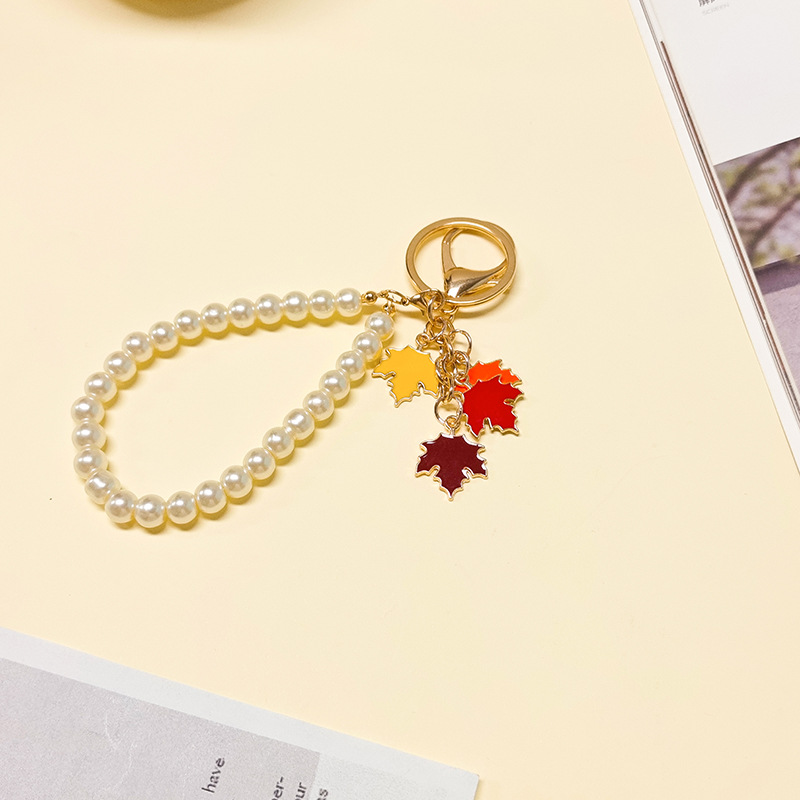 创意钥匙扣挂件毕业小礼物珍珠枫叶可爱包包挂饰女diy挂件扣配件