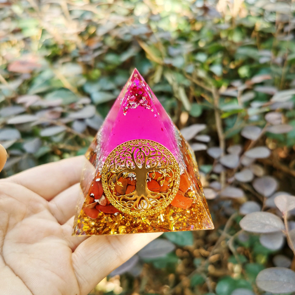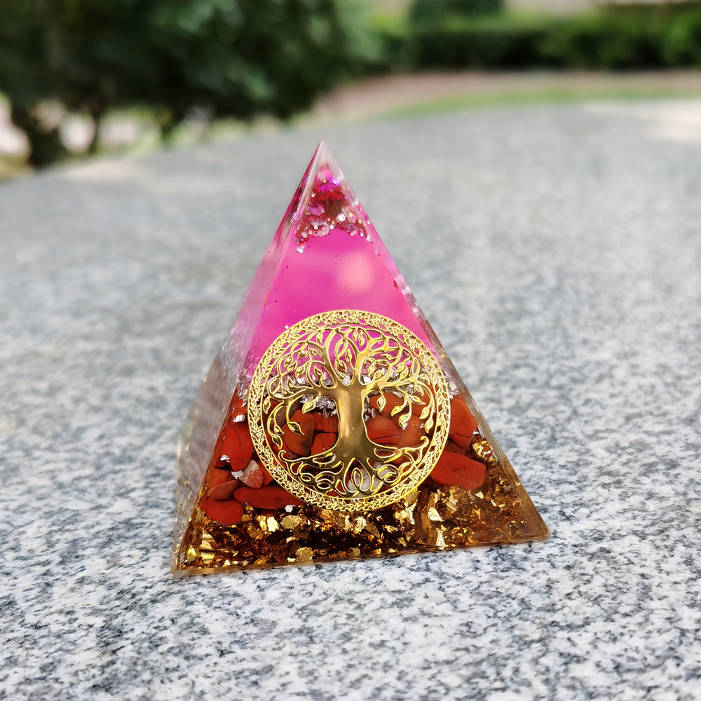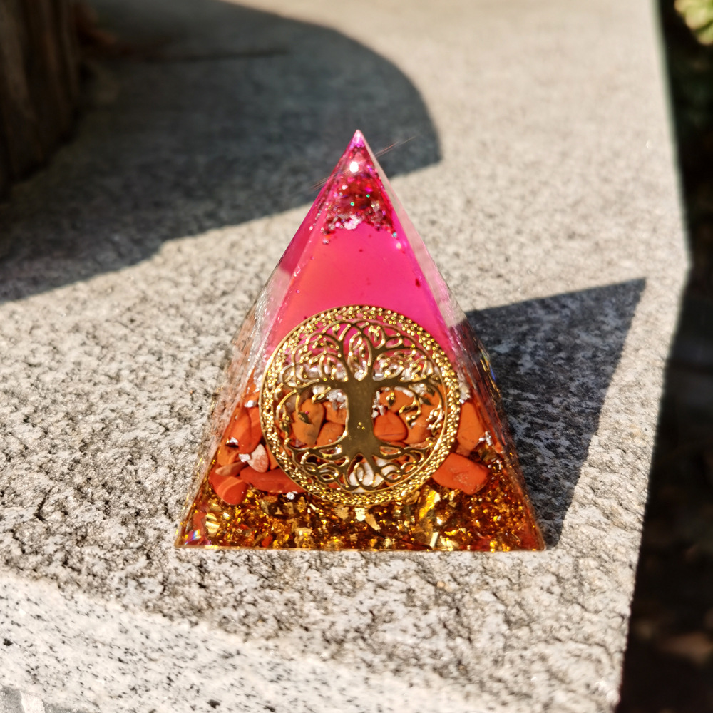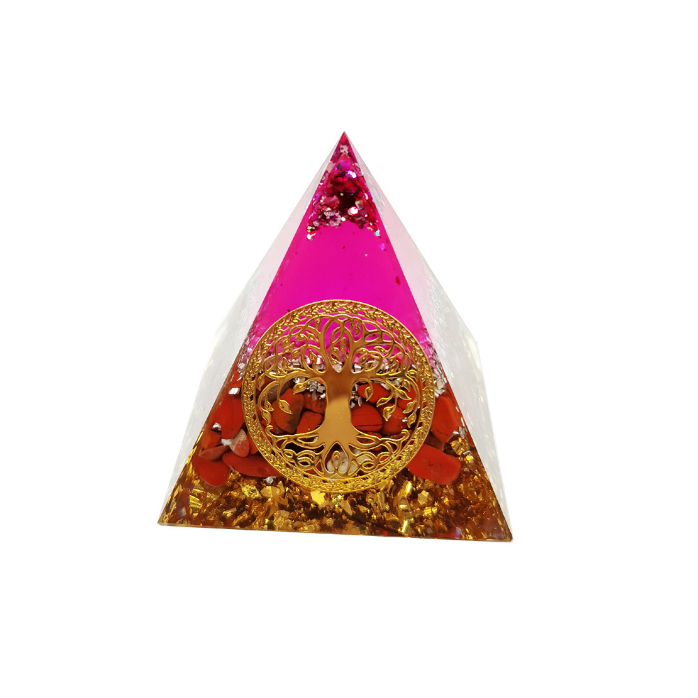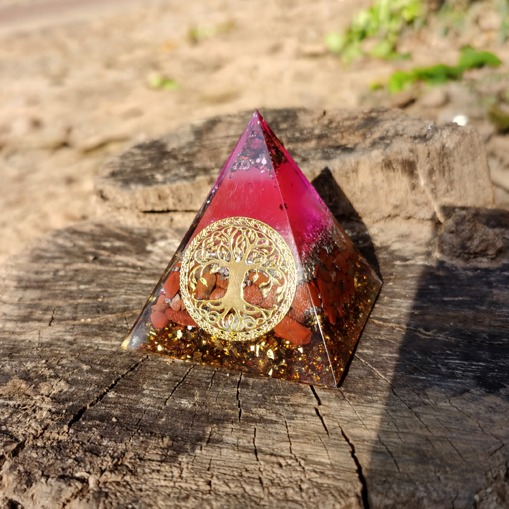 跨境外贸爆款南红生命树水晶碎埃及能量金字塔石家居桌面手工摆件