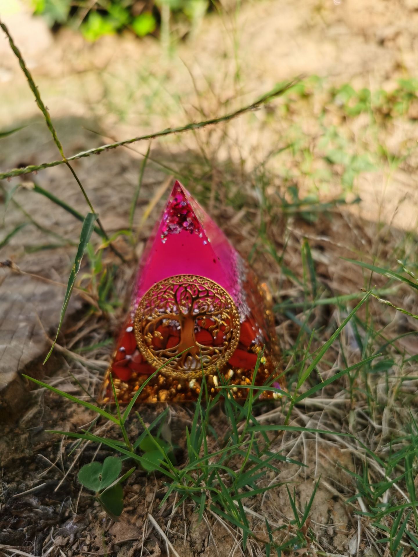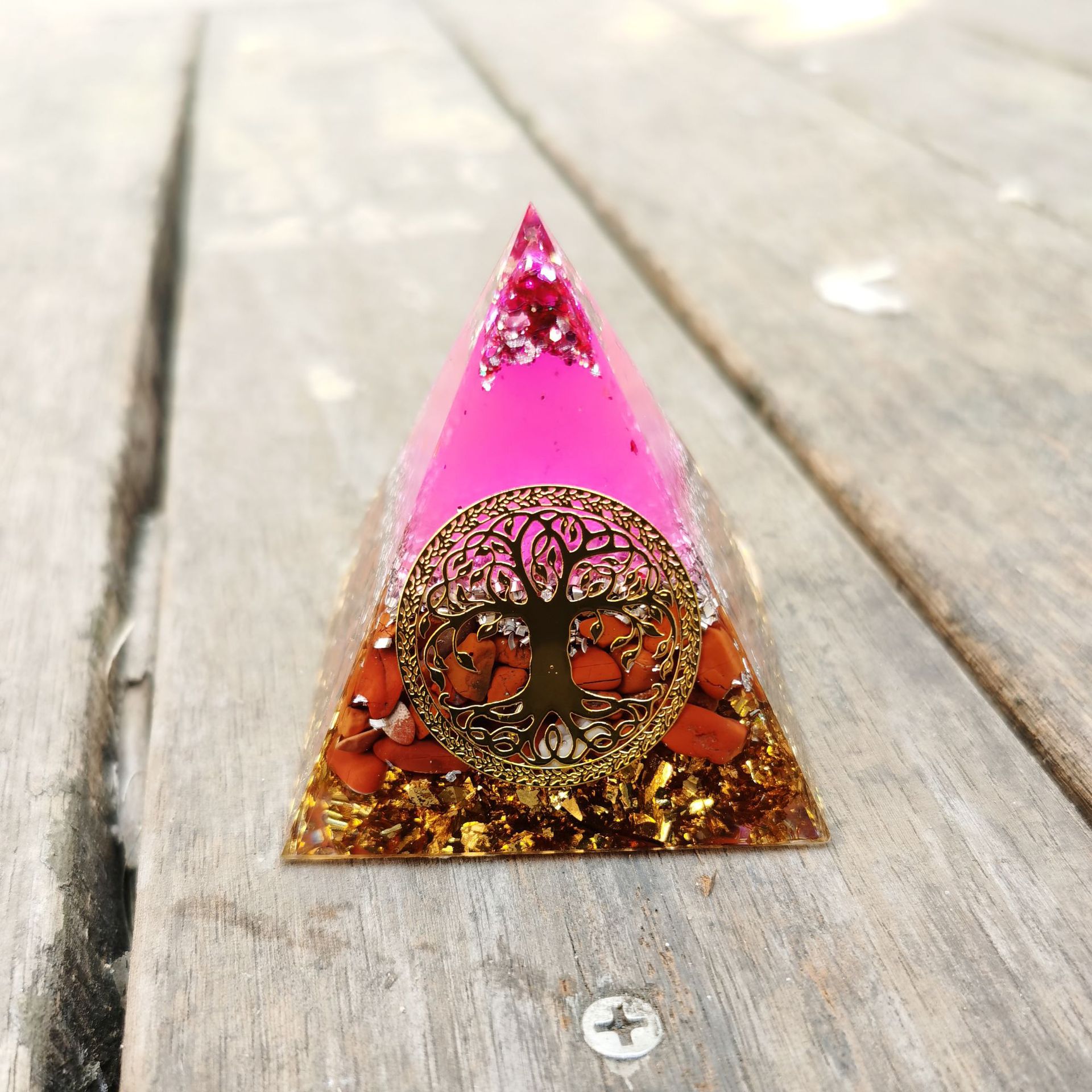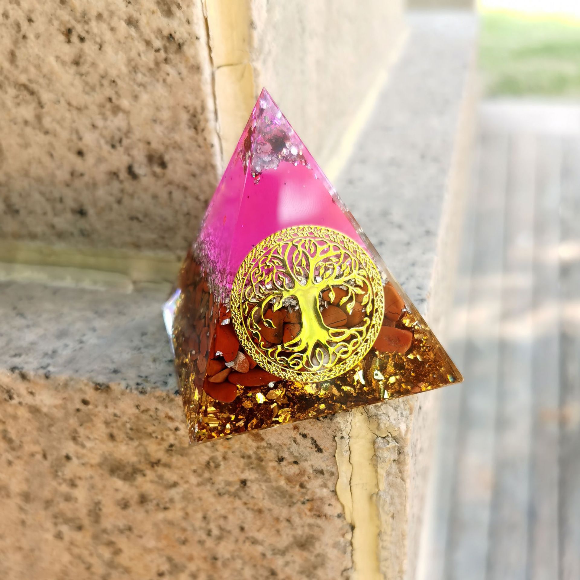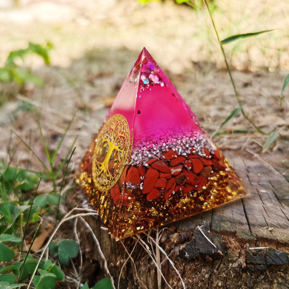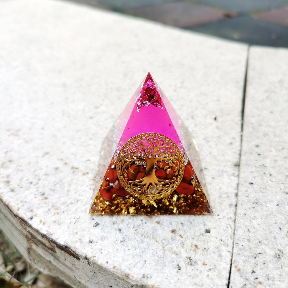 跨境外贸爆款南红生命树水晶碎埃及能量金字塔石家居桌面手工摆件