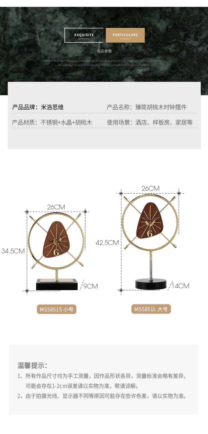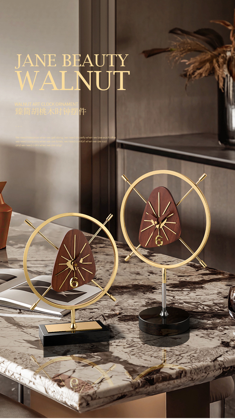 北欧现代简约创意胡桃木座钟摆件客厅装饰时钟轻奢家用钟表桌面 English | 投诉