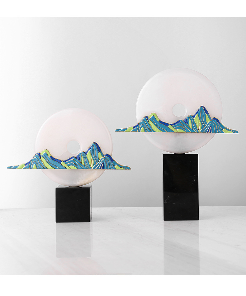 新中式禅意玉石摆件轻奢创意酒店售楼部办公室客厅玄关家