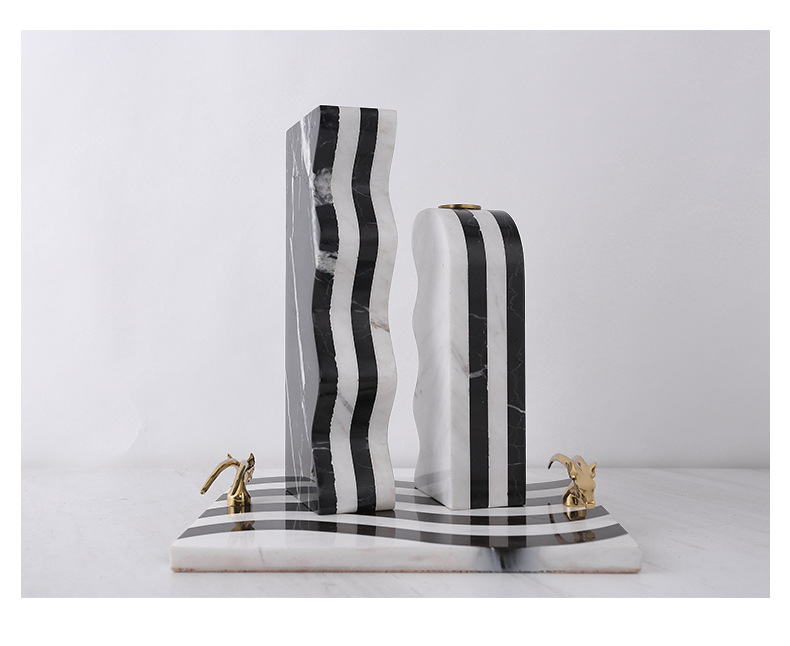 现代北欧样板房客厅软装摆件欧式餐桌大理石烛台装饰品蜡