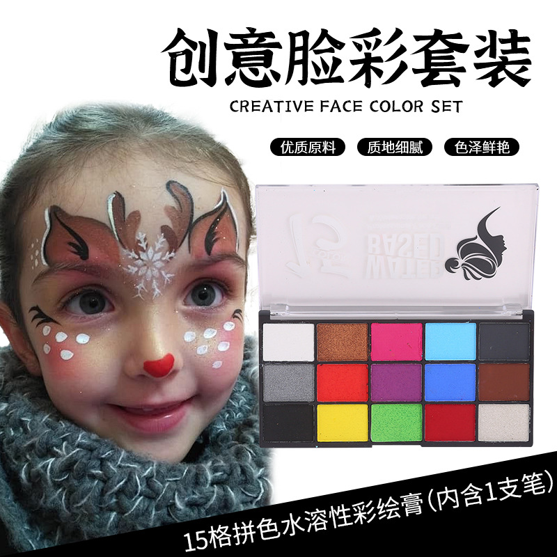 15色水溶性脸彩套装人体彩绘颜料膏体极色妆画防水油彩颜料跨境 投诉