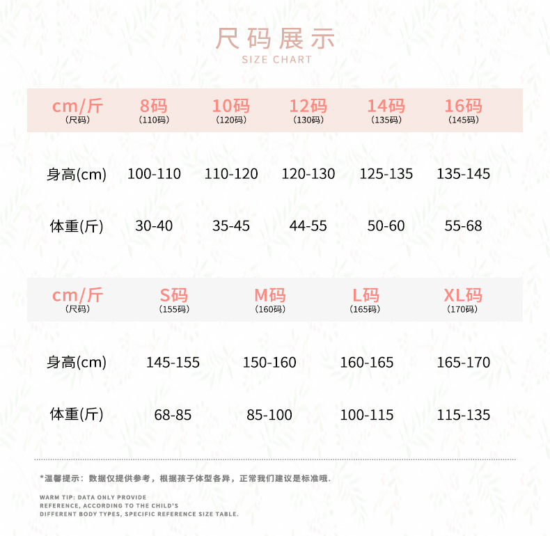 | 大童M码(妈妈同款)(160码) | ¥4200 | 8888套可售 |