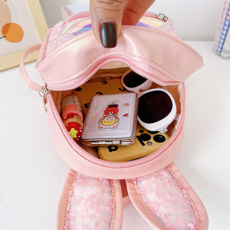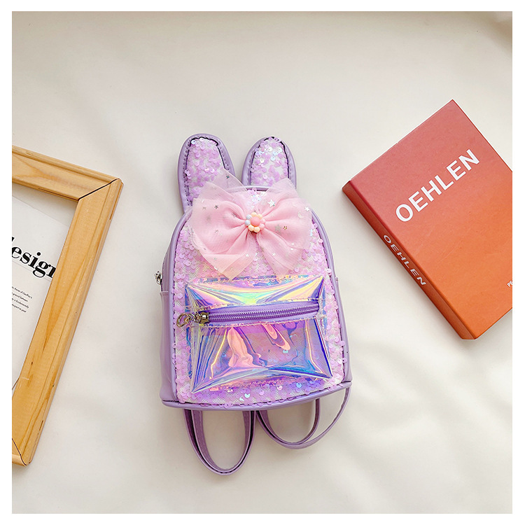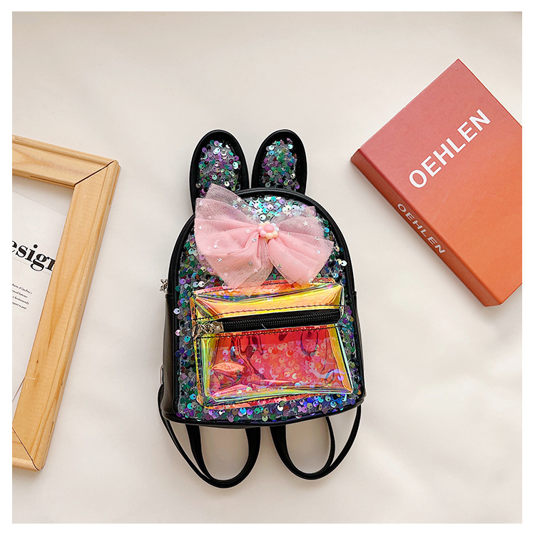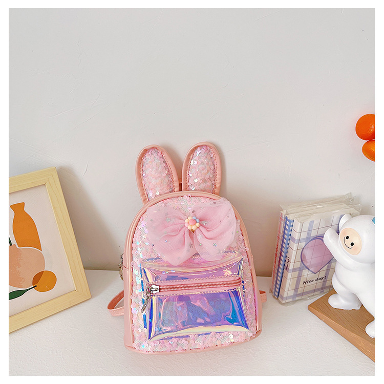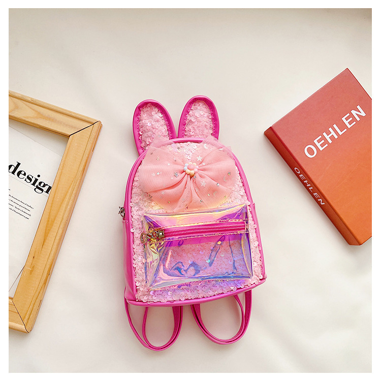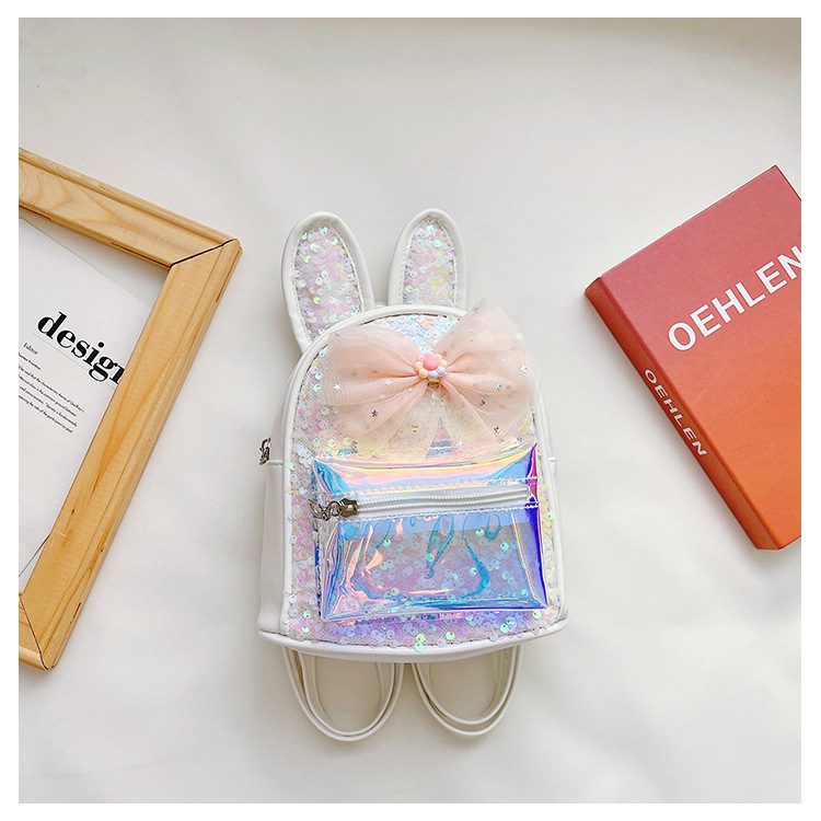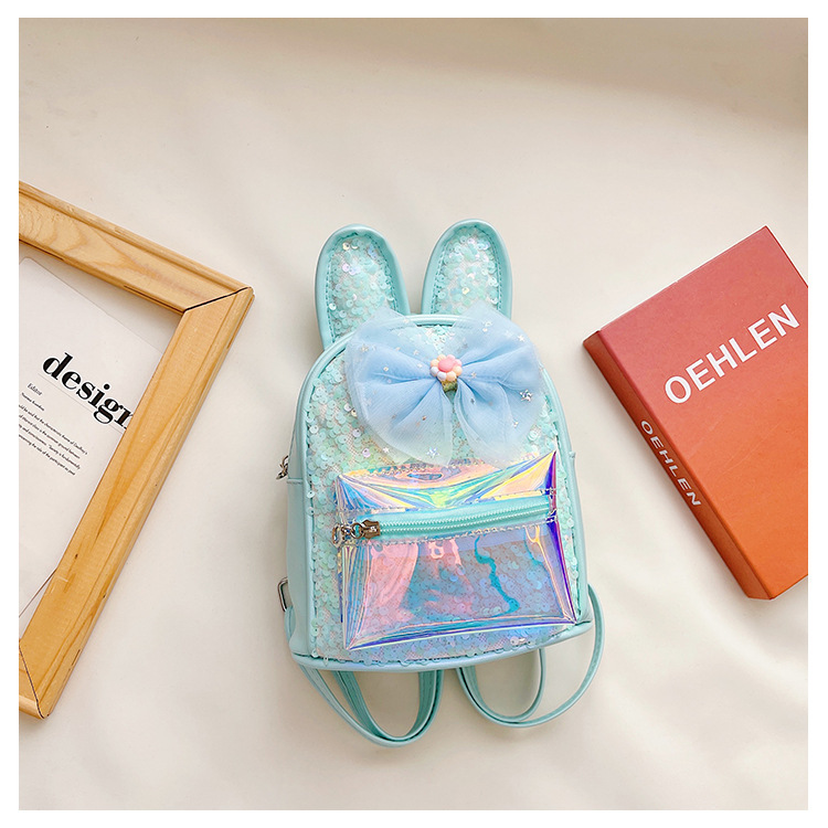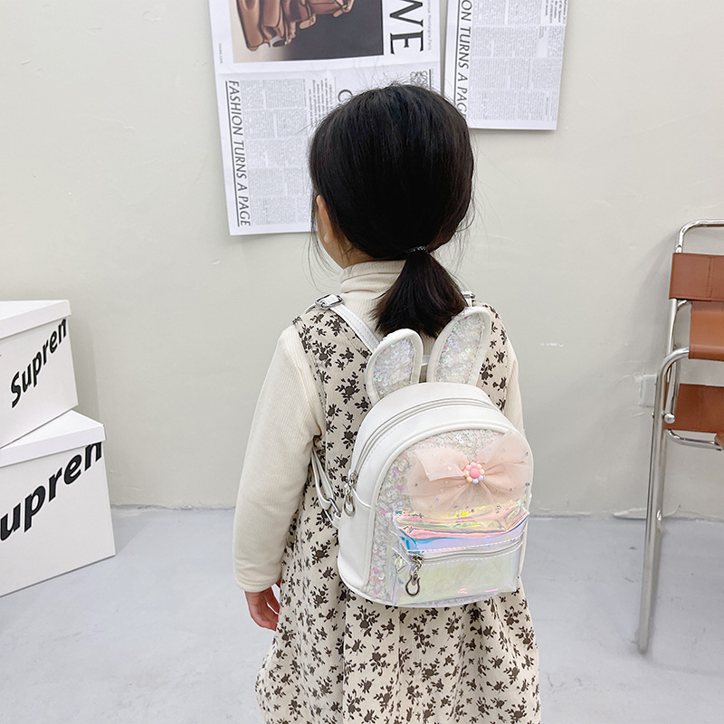 HAONNA新款儿童包包镭射PU双肩包兔耳朵亮片小背包时尚幼儿园书包 投诉