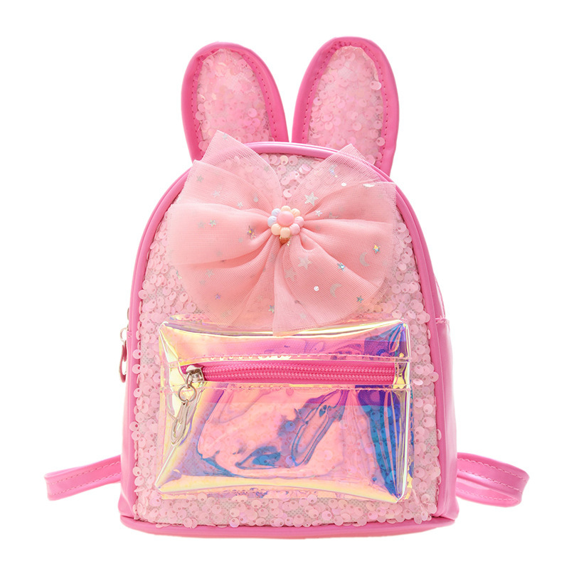 HAONNA新款儿童包包镭射PU双肩包兔耳朵亮片小背包时尚幼儿园书包