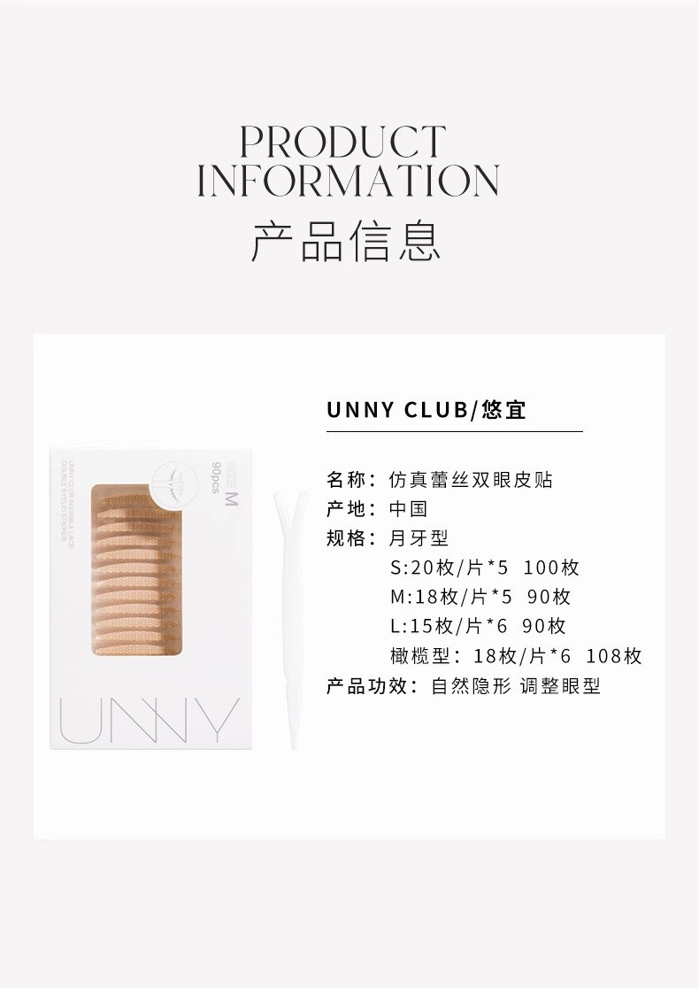 unny双眼皮贴女无痕自然肿眼泡纤维网纱单双面肉色大学生蕾丝隐形