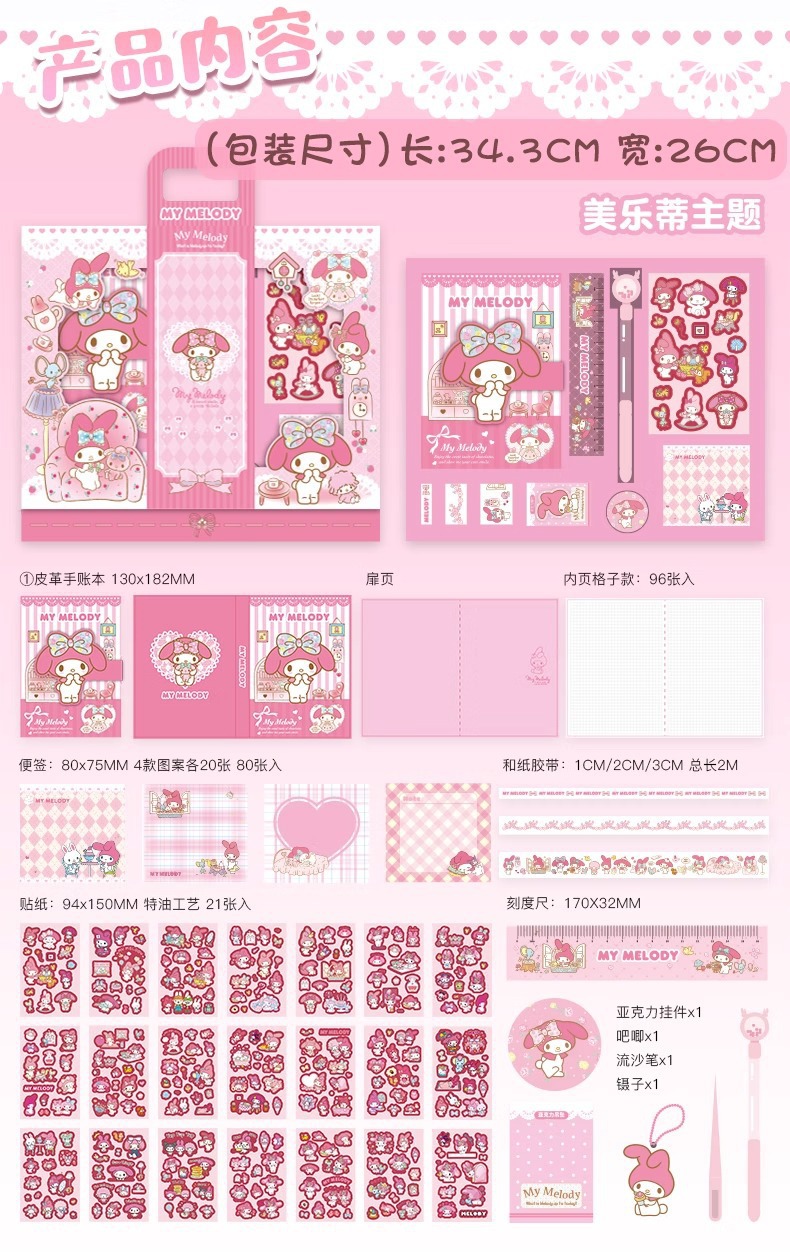 三丽鸥手账本文具套装礼盒美乐蒂库洛米高颜值大礼包全套笔记本子 English | 投诉