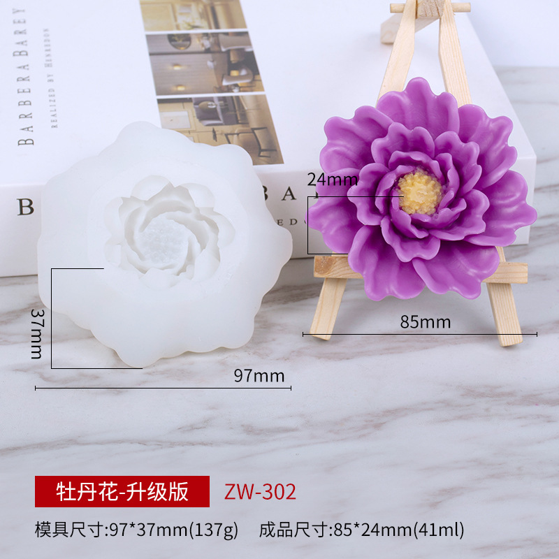 三信 花朵香薰蜡烛硅胶模具玫瑰花牡丹花菊花巧克力石膏滴胶磨具