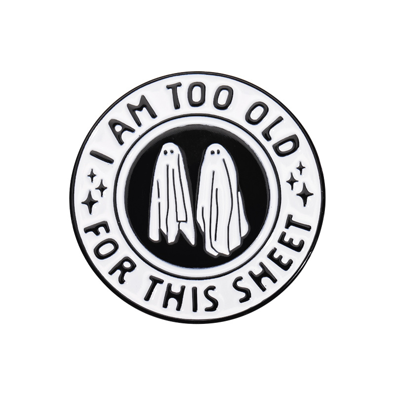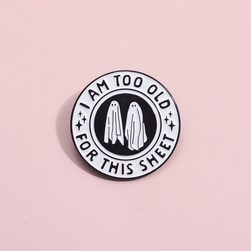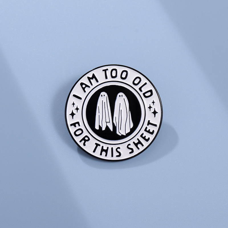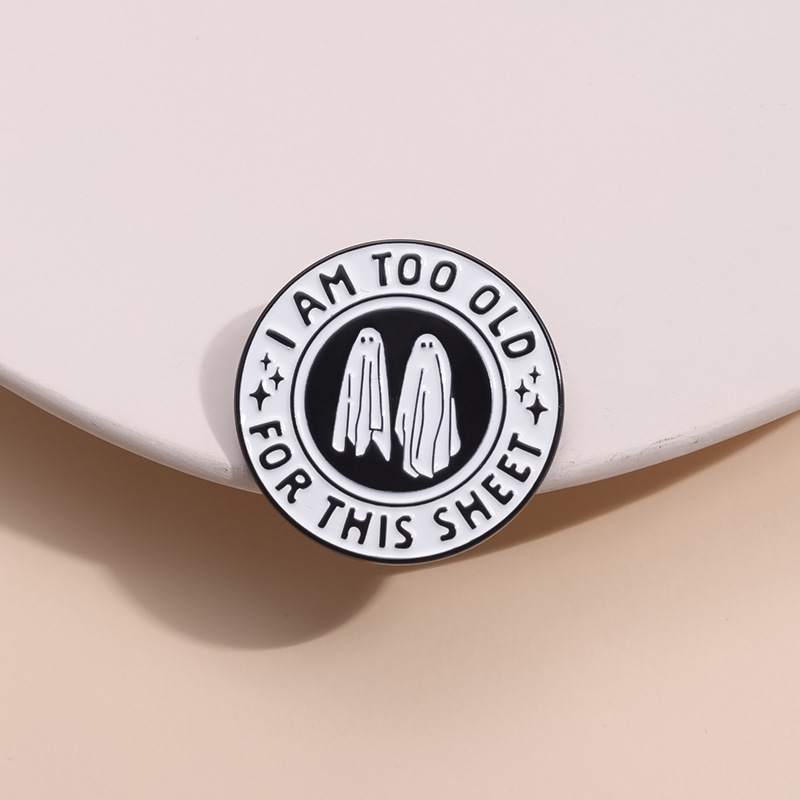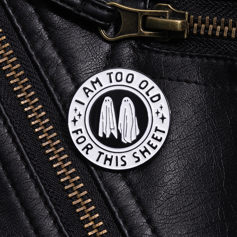 个性创意万圣节黑白色圆形合金胸针可爱卡通幽灵烤漆徽章跨境配饰