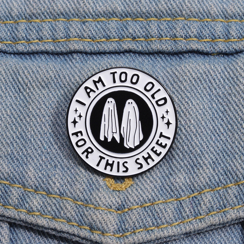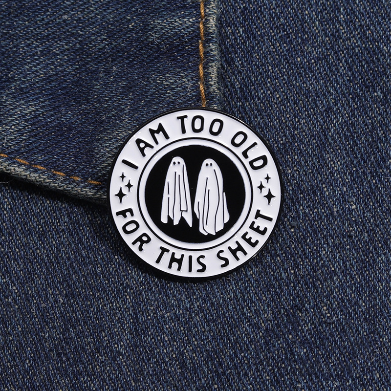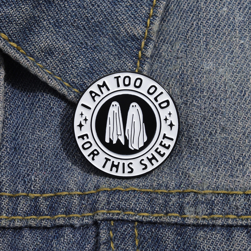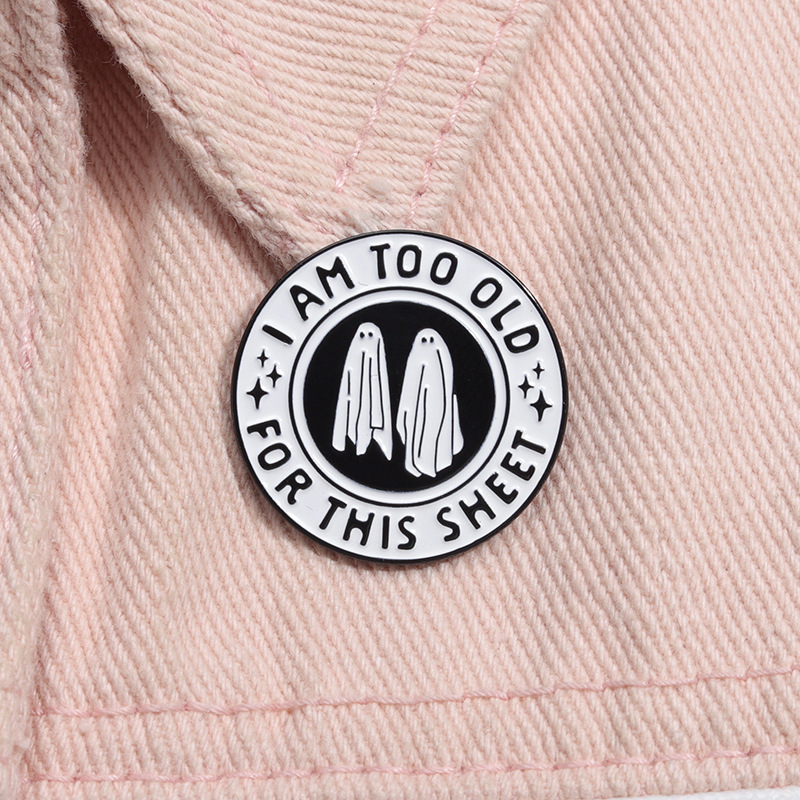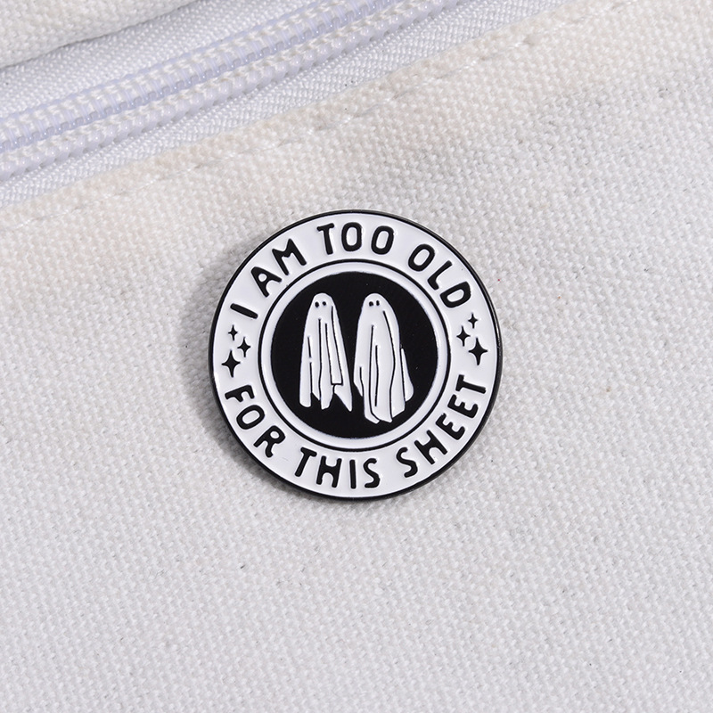 个性创意万圣节黑白色圆形合金胸针可爱卡通幽灵烤漆徽章跨境配饰